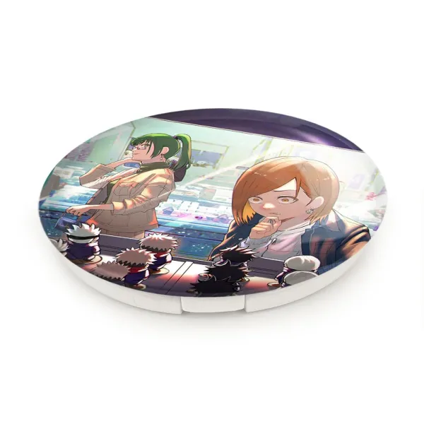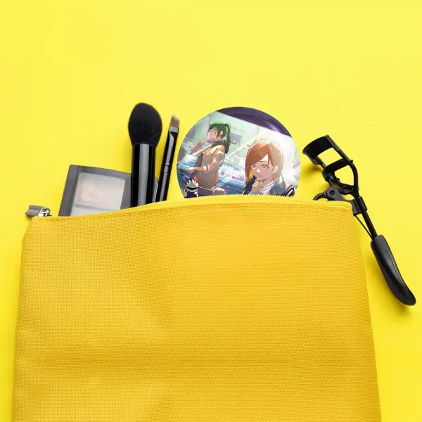 آینه های تاشو نوبارا و ماکی انیمه جوجوتسو کایزن خندالو، از جنس پلاستیک فشرده ABS تولید شده و به رنگ سفید می باشد. یکی از آینه ها ابعاد واقعی را نشان داده و دیگری با قابلیت بزرگنمایی، جزئیات را بهتر نمایش می دهد. ابعاد هر یک از آینه ها، دایره ای به قطر 7.5 سانت می باشد که نه خیلی بزرگ و غیر قابل استفاده در کیف آرایشی ست و نه خیلی کوچک که تصویر خاصی در آن مشاهده نشود. آینه تاشو نوبارا و ماکی انیمه جوجوتسو کایزن سایزی استاندارد و کارآمد دارد و در هر کیفی جا میگیرد. چاپ طرح بوسیله چاپگرهای دیجیتال شش رنگ با شفافیت و کیفیتی مثال زدنی بر روی یک وجه از بدنه ی آینه انجام گرفته و با روکش لمینت حرارتی پوشیده شده که در مقابل آسیب و خط و خش مقاوم بوده و کیفیت بالایی دارد. درب آینه بوسیله قفل بدنه ی آن، باز نمی ماند و کاملا بسته می شود و مناسب قرار گیری در کیف لوازم آرایش و کیف های کوچک دستی نیز هست. آینه های تاشو نوبارا و ماکی انیمه جوجوتسو کایزن خندالو با تنوع طرحی بسیار بالا، سلیقه هر نوع مخاطبی را تامین میکند.