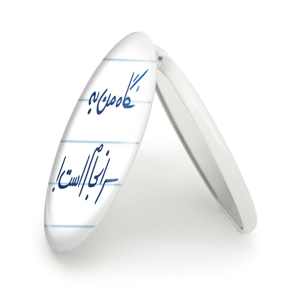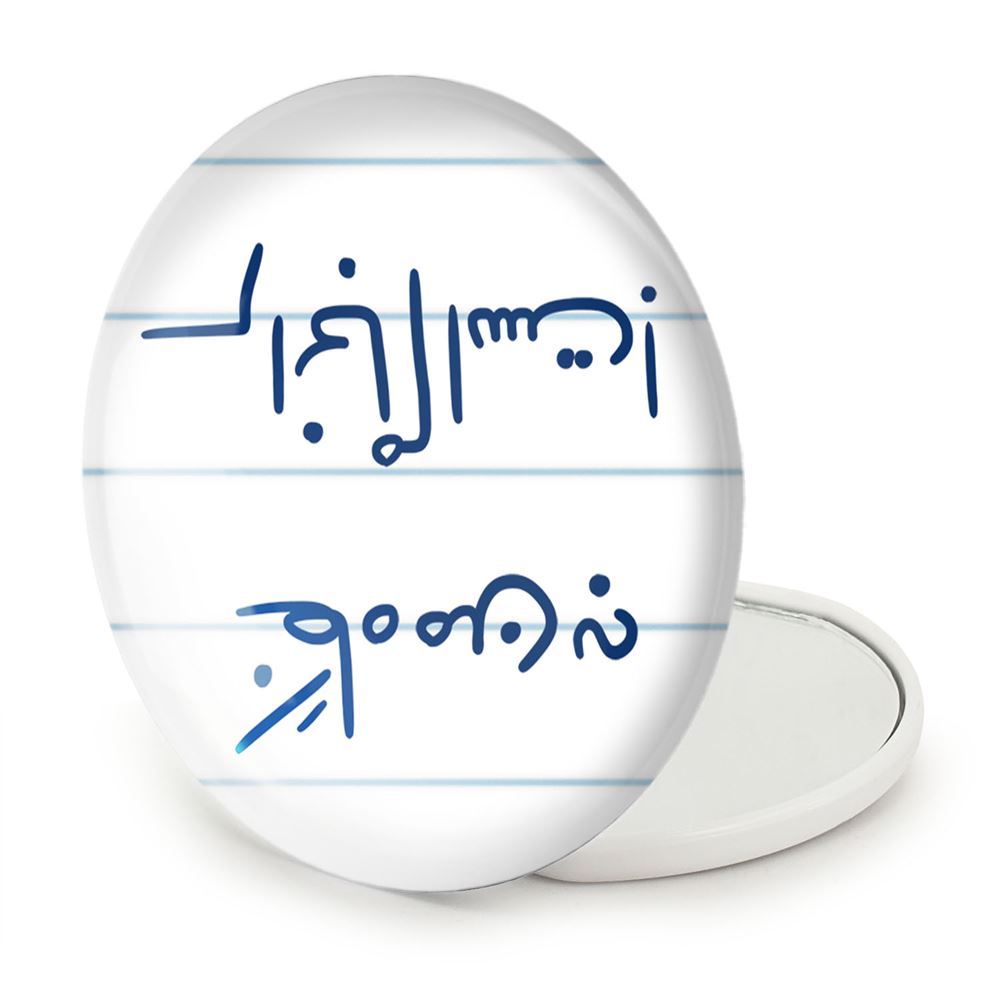 آینه های تاشو نگاه من به سرانجام است خندالو، از جنس پلاستیک فشرده ABS تولید شده و به رنگ سفید می باشد. یکی از آینه ها ابعاد واقعی را نشان داده و دیگری با قابلیت بزرگنمایی، جزئیات را بهتر نمایش می دهد. ابعاد هر یک از آینه ها، دایره ای به قطر 7.5 سانت می باشد که نه خیلی بزرگ و غیر قابل استفاده در کیف آرایشی ست و نه خیلی کوچک که تصویر خاصی در آن مشاهده نشود. آینه تاشو نگاه من به سرانجام است سایزی استاندارد و کارآمد دارد و در هر کیفی جا میگیرد. چاپ طرح بوسیله چاپگرهای دیجیتال شش رنگ با شفافیت و کیفیتی مثال زدنی بر روی یک وجه از بدنه ی آینه انجام گرفته و با روکش لمینت حرارتی پوشیده شده که در مقابل آسیب و خط و خش مقاوم بوده و کیفیت بالایی دارد. درب آینه بوسیله قفل بدنه ی آن، باز نمی ماند و کاملا بسته می شود و مناسب قرار گیری در کیف لوازم آرایش و کیف های کوچک دستی نیز هست. آینه های تاشو نگاه من به سرانجام است خندالو با تنوع طرحی بسیار بالا، سلیقه هر نوع مخاطبی را تامین میکند.