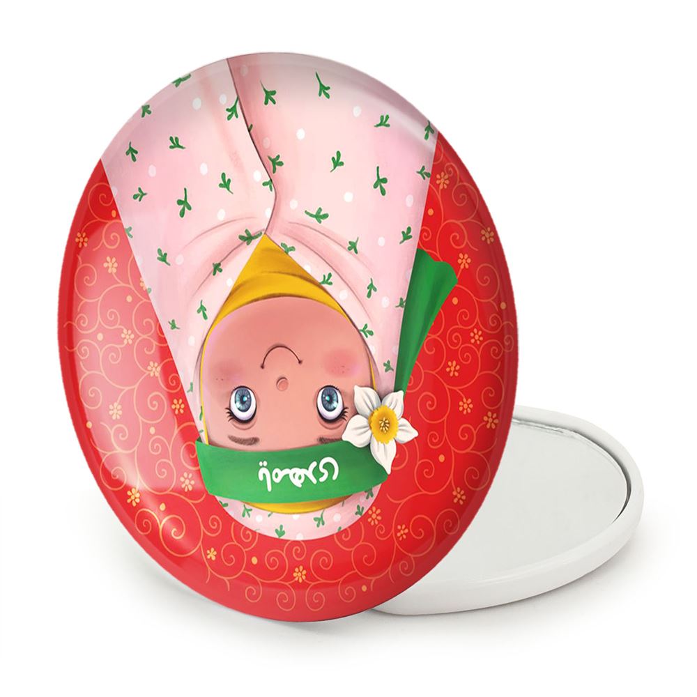 آینه های تاشو نیمه شعبان کودکانه خندالو، از جنس پلاستیک فشرده ABS تولید شده و به رنگ سفید می باشد. یکی از آینه ها ابعاد واقعی را نشان داده و دیگری با قابلیت بزرگنمایی، جزئیات را بهتر نمایش می دهد. ابعاد هر یک از آینه ها، دایره ای به قطر 7.5 سانت می باشد که نه خیلی بزرگ و غیر قابل استفاده در کیف آرایشی ست و نه خیلی کوچک که تصویر خاصی در آن مشاهده نشود. آینه تاشو نیمه شعبان کودکانه سایزی استاندارد و کارآمد دارد و در هر کیفی جا میگیرد. چاپ طرح بوسیله چاپگرهای دیجیتال شش رنگ با شفافیت و کیفیتی مثال زدنی بر روی یک وجه از بدنه ی آینه انجام گرفته و با روکش لمینت حرارتی پوشیده شده که در مقابل آسیب و خط و خش مقاوم بوده و کیفیت بالایی دارد. درب آینه بوسیله قفل بدنه ی آن، باز نمی ماند و کاملا بسته می شود و مناسب قرار گیری در کیف لوازم آرایش و کیف های کوچک دستی نیز هست. آینه های تاشو نیمه شعبان کودکانه خندالو با تنوع طرحی بسیار بالا، سلیقه هر نوع مخاطبی را تامین میکند.