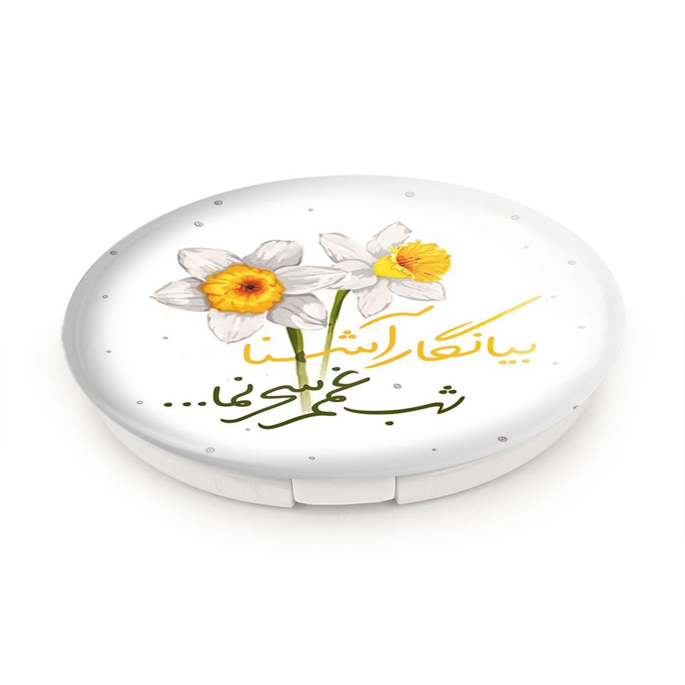 آینه های تاشو نیمه شعبان خندالو، از جنس پلاستیک فشرده ABS تولید شده و به رنگ سفید می باشد. یکی از آینه ها ابعاد واقعی را نشان داده و دیگری با قابلیت بزرگنمایی، جزئیات را بهتر نمایش می دهد.