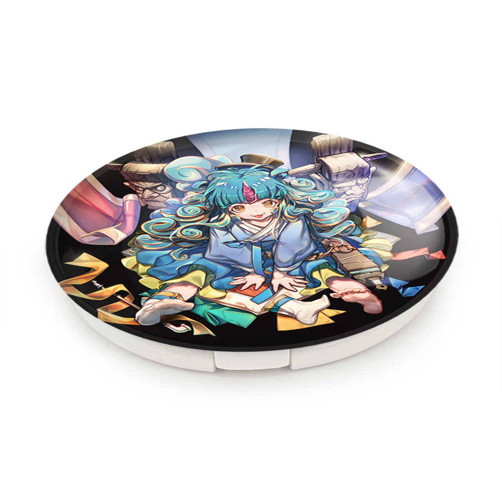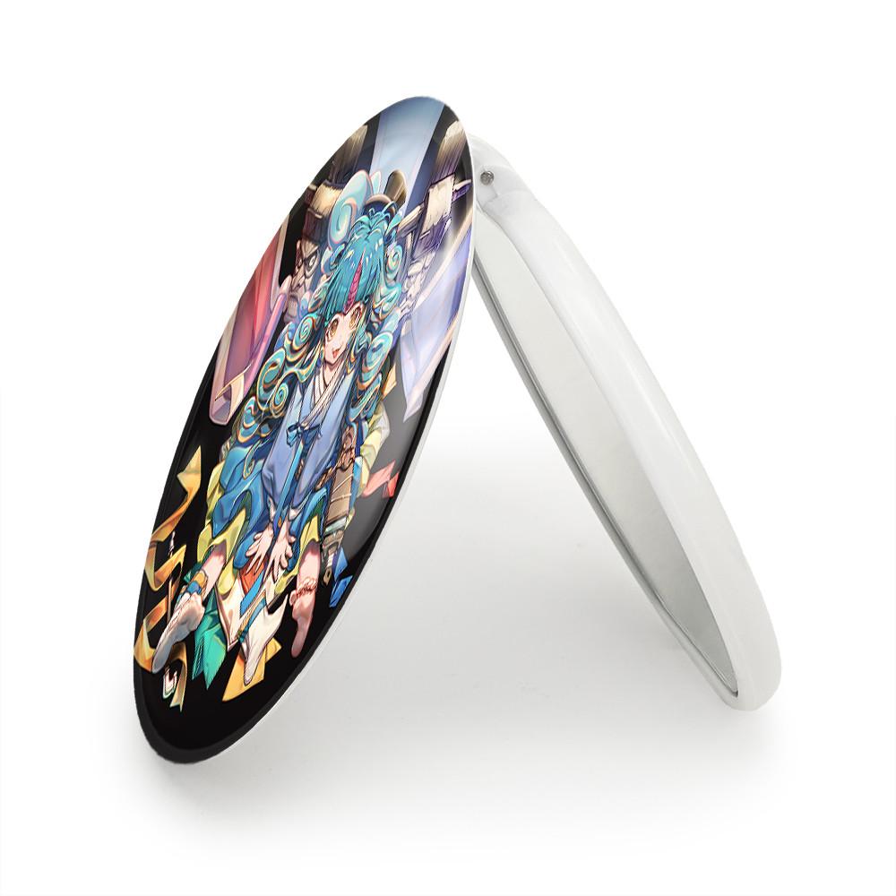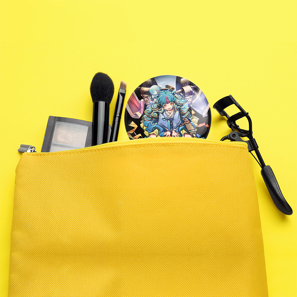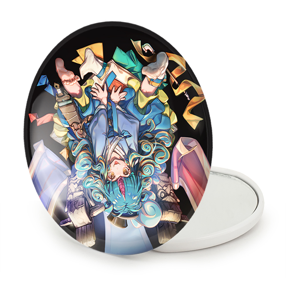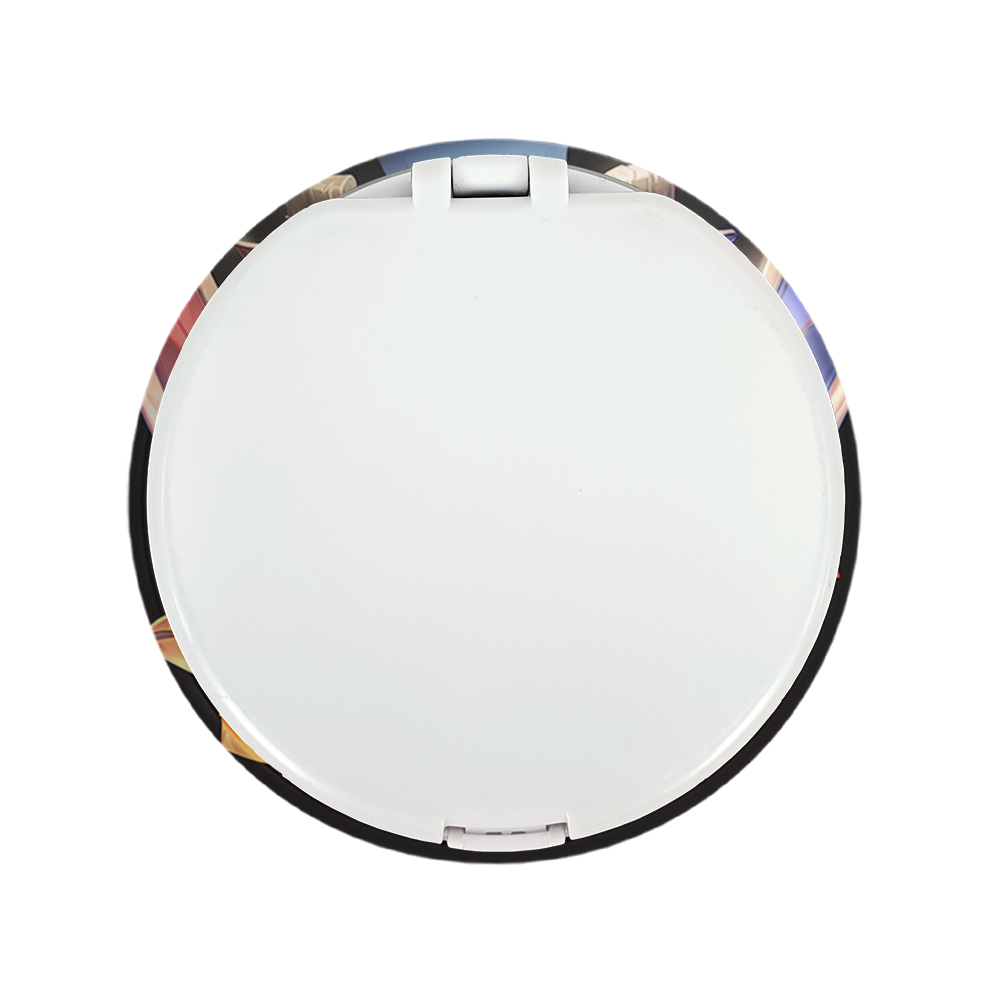 آینه های تاشو هائتا انیمه خدای دبیرستان خندالو، از جنس پلاستیک فشرده ABS تولید شده و به رنگ سفید می باشد. یکی از آینه ها ابعاد واقعی را نشان داده و دیگری با قابلیت بزرگنمایی، جزئیات را بهتر نمایش می دهد. ابعاد هر یک از آینه ها، دایره ای به قطر 7.5 سانت می باشد که نه خیلی بزرگ و غیر قابل استفاده در کیف آرایشی ست و نه خیلی کوچک که تصویر خاصی در آن مشاهده نشود. آینه تاشو هائتا انیمه خدای دبیرستان سایزی استاندارد و کارآمد دارد و در هر کیفی جا میگیرد. چاپ طرح بوسیله چاپگرهای دیجیتال شش رنگ با شفافیت و کیفیتی مثال زدنی بر روی یک وجه از بدنه ی آینه انجام گرفته و با روکش لمینت حرارتی پوشیده شده که در مقابل آسیب و خط و خش مقاوم بوده و کیفیت بالایی دارد. درب آینه بوسیله قفل بدنه ی آن، باز نمی ماند و کاملا بسته می شود و مناسب قرار گیری در کیف لوازم آرایش و کیف های کوچک دستی نیز هست. آینه های تاشو هائتا انیمه خدای دبیرستان خندالو با تنوع طرحی بسیار بالا، سلیقه هر نوع مخاطبی را تامین میکند.