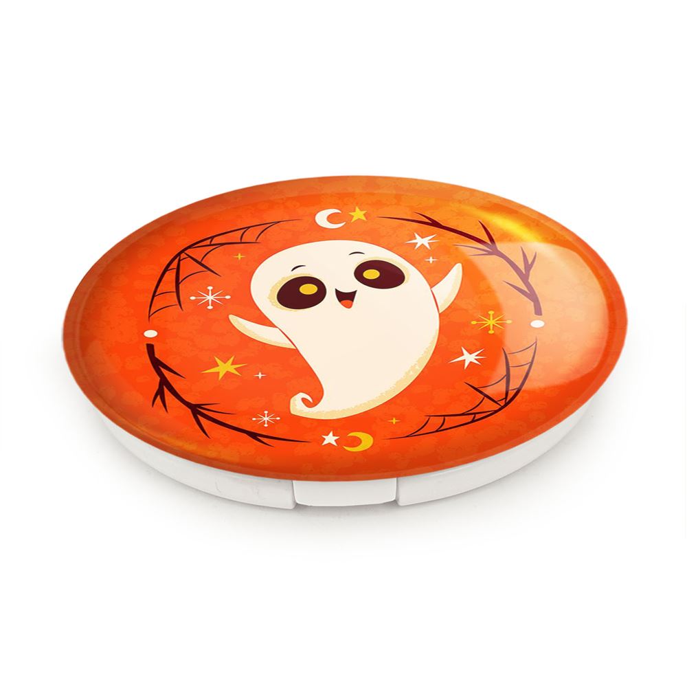 آینه های تاشو هالووین خندالو، از جنس پلاستیک فشرده ABS تولید شده و به رنگ سفید می باشد. یکی از آینه ها ابعاد واقعی را نشان داده و دیگری با قابلیت بزرگنمایی، جزئیات را بهتر نمایش می دهد. ابعاد هر یک از آینه ها، دایره ای به قطر 7.5 سانت می باشد که نه خیلی بزرگ و غیر قابل استفاده در کیف آرایشی ست و نه خیلی کوچک که تصویر خاصی در آن مشاهده نشود. آینه تاشو هالووین سایزی استاندارد و کارآمد دارد و در هر کیفی جا میگیرد. چاپ طرح بوسیله چاپگرهای دیجیتال شش رنگ با شفافیت و کیفیتی مثال زدنی بر روی یک وجه از بدنه ی آینه انجام گرفته و با روکش لمینت حرارتی پوشیده شده که در مقابل آسیب و خط و خش مقاوم بوده و کیفیت بالایی دارد. درب آینه بوسیله قفل بدنه ی آن، باز نمی ماند و کاملا بسته می شود و مناسب قرار گیری در کیف لوازم آرایش و کیف های کوچک دستی نیز هست. آینه های تاشو هالووین خندالو با تنوع طرحی بسیار بالا، سلیقه هر نوع مخاطبی را تامین میکند.