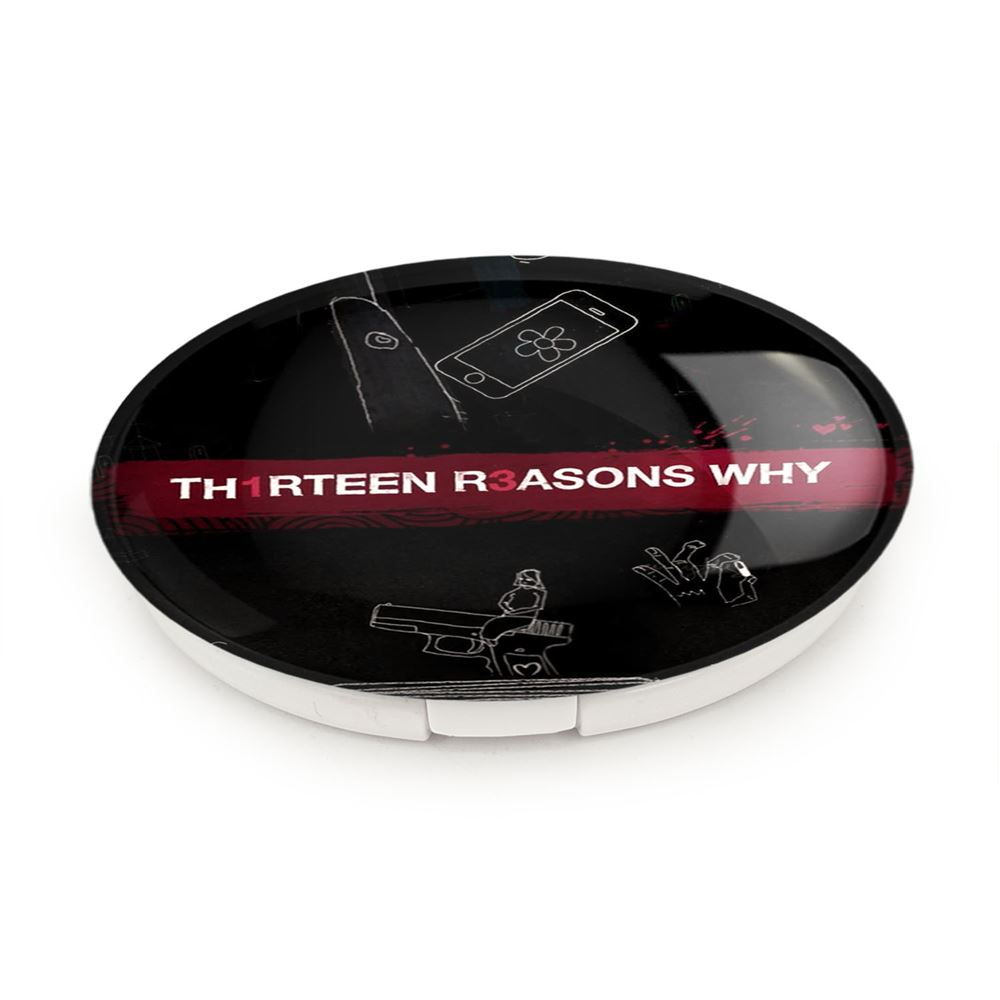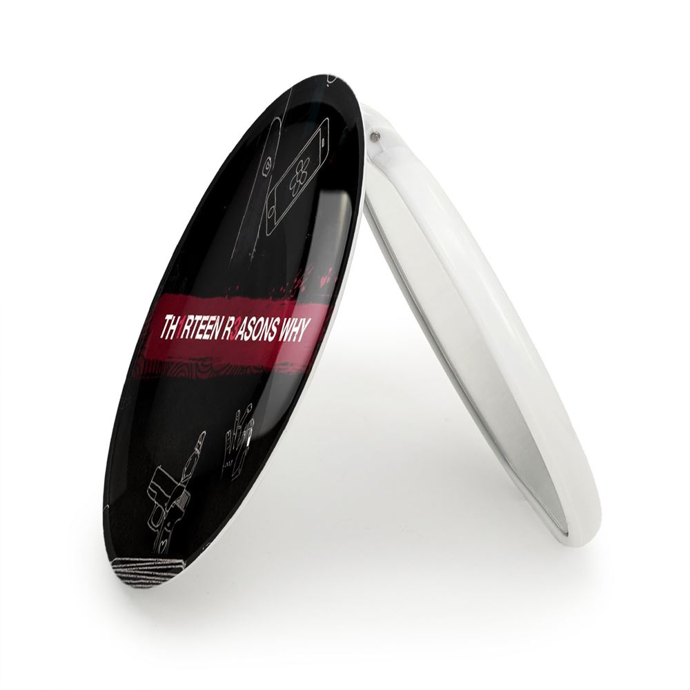 آینه های تاشو هانا بیکر 13دلیل برای اینکه Reasons Why13 خندالو، از جنس پلاستیک فشرده ABS تولید شده و به رنگ سفید می باشد. یکی از آینه ها ابعاد واقعی را نشان داده و دیگری با قابلیت بزرگنمایی، جزئیات را بهتر نمایش می دهد. ابعاد هر یک از آینه ها، دایره ای به قطر 7.5 سانت می باشد که نه خیلی بزرگ و غیر قابل استفاده در کیف آرایشی ست و نه خیلی کوچک که تصویر خاصی در آن مشاهده نشود. آینه تاشو هانا بیکر 13دلیل برای اینکه Reasons Why13 سایزی استاندارد و کارآمد دارد و در هر کیفی جا میگیرد. چاپ طرح بوسیله چاپگرهای دیجیتال شش رنگ با شفافیت و کیفیتی مثال زدنی بر روی یک وجه از بدنه ی آینه انجام گرفته و با روکش لمینت حرارتی پوشیده شده که در مقابل آسیب و خط و خش مقاوم بوده و کیفیت بالایی دارد. درب آینه بوسیله قفل بدنه ی آن، باز نمی ماند و کاملا بسته می شود و مناسب قرار گیری در کیف لوازم آرایش و کیف های کوچک دستی نیز هست. آینه های تاشو هانا بیکر 13دلیل برای اینکه Reasons Why13 خندالو با تنوع طرحی بسیار بالا، سلیقه هر نوع مخاطبی را تامین میکند.