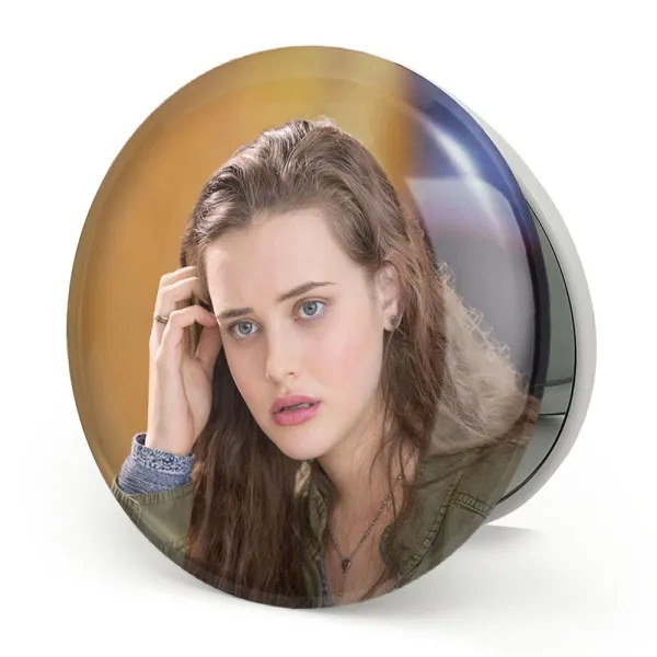 آینه های تاشو هانا بیکر 13دلیل برای اینکه Reasons Why13 خندالو، از جنس پلاستیک فشرده ABS تولید شده و به رنگ سفید می باشد. یکی از آینه ها ابعاد واقعی را نشان داده و دیگری با قابلیت بزرگنمایی، جزئیات را بهتر نمایش می دهد. ابعاد هر یک از آینه ها، دایره ای به قطر 7.5 سانت می باشد که نه خیلی بزرگ و غیر قابل استفاده در کیف آرایشی ست و نه خیلی کوچک که تصویر خاصی در آن مشاهده نشود. آینه تاشو هانا بیکر 13دلیل برای اینکه Reasons Why13 سایزی استاندارد و کارآمد دارد و در هر کیفی جا میگیرد. چاپ طرح بوسیله چاپگرهای دیجیتال شش رنگ با شفافیت و کیفیتی مثال زدنی بر روی یک وجه از بدنه ی آینه انجام گرفته و با روکش لمینت حرارتی پوشیده شده که در مقابل آسیب و خط و خش مقاوم بوده و کیفیت بالایی دارد. درب آینه بوسیله قفل بدنه ی آن، باز نمی ماند و کاملا بسته می شود و مناسب قرار گیری در کیف لوازم آرایش و کیف های کوچک دستی نیز هست. آینه های تاشو هانا بیکر 13دلیل برای اینکه Reasons Why13 خندالو با تنوع طرحی بسیار بالا، سلیقه هر نوع مخاطبی را تامین میکند.