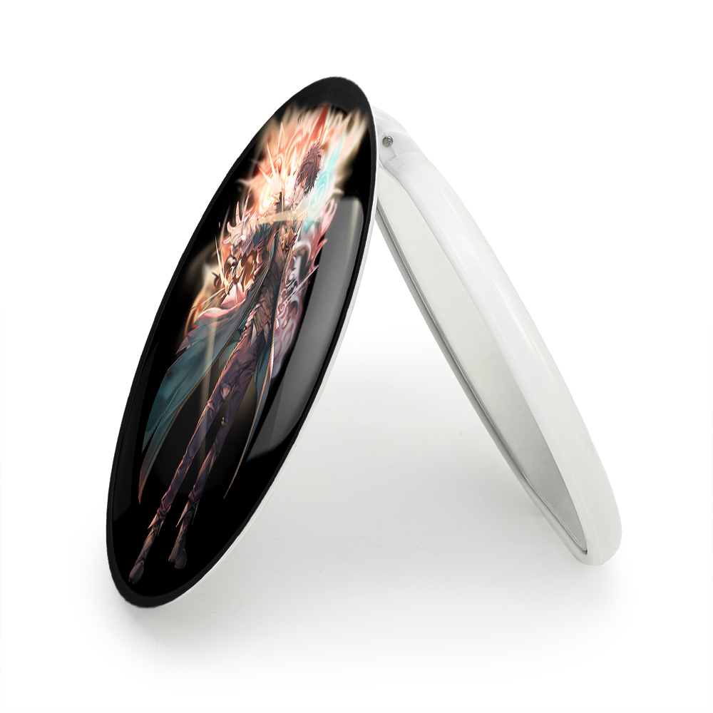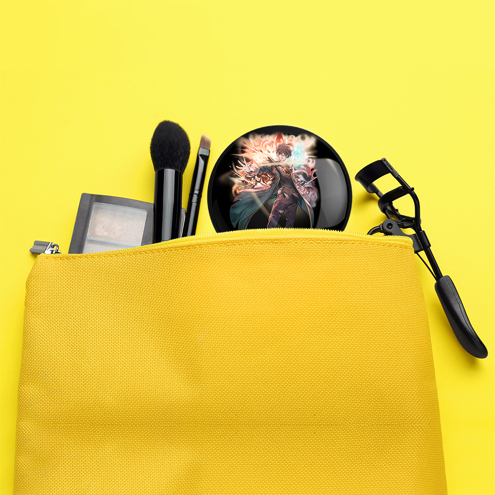 آینه های تاشو هان انیمه خدای دبیرستان خندالو، از جنس پلاستیک فشرده ABS تولید شده و به رنگ سفید می باشد. یکی از آینه ها ابعاد واقعی را نشان داده و دیگری با قابلیت بزرگنمایی، جزئیات را بهتر نمایش می دهد. ابعاد هر یک از آینه ها، دایره ای به قطر 7.5 سانت می باشد که نه خیلی بزرگ و غیر قابل استفاده در کیف آرایشی ست و نه خیلی کوچک که تصویر خاصی در آن مشاهده نشود. آینه تاشو هان انیمه خدای دبیرستان سایزی استاندارد و کارآمد دارد و در هر کیفی جا میگیرد. چاپ طرح بوسیله چاپگرهای دیجیتال شش رنگ با شفافیت و کیفیتی مثال زدنی بر روی یک وجه از بدنه ی آینه انجام گرفته و با روکش لمینت حرارتی پوشیده شده که در مقابل آسیب و خط و خش مقاوم بوده و کیفیت بالایی دارد. درب آینه بوسیله قفل بدنه ی آن، باز نمی ماند و کاملا بسته می شود و مناسب قرار گیری در کیف لوازم آرایش و کیف های کوچک دستی نیز هست. آینه های تاشو هان انیمه خدای دبیرستان خندالو با تنوع طرحی بسیار بالا، سلیقه هر نوع مخاطبی را تامین میکند.