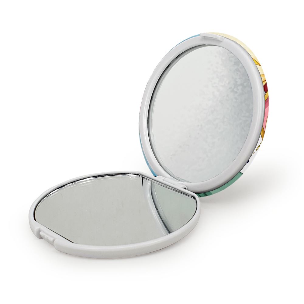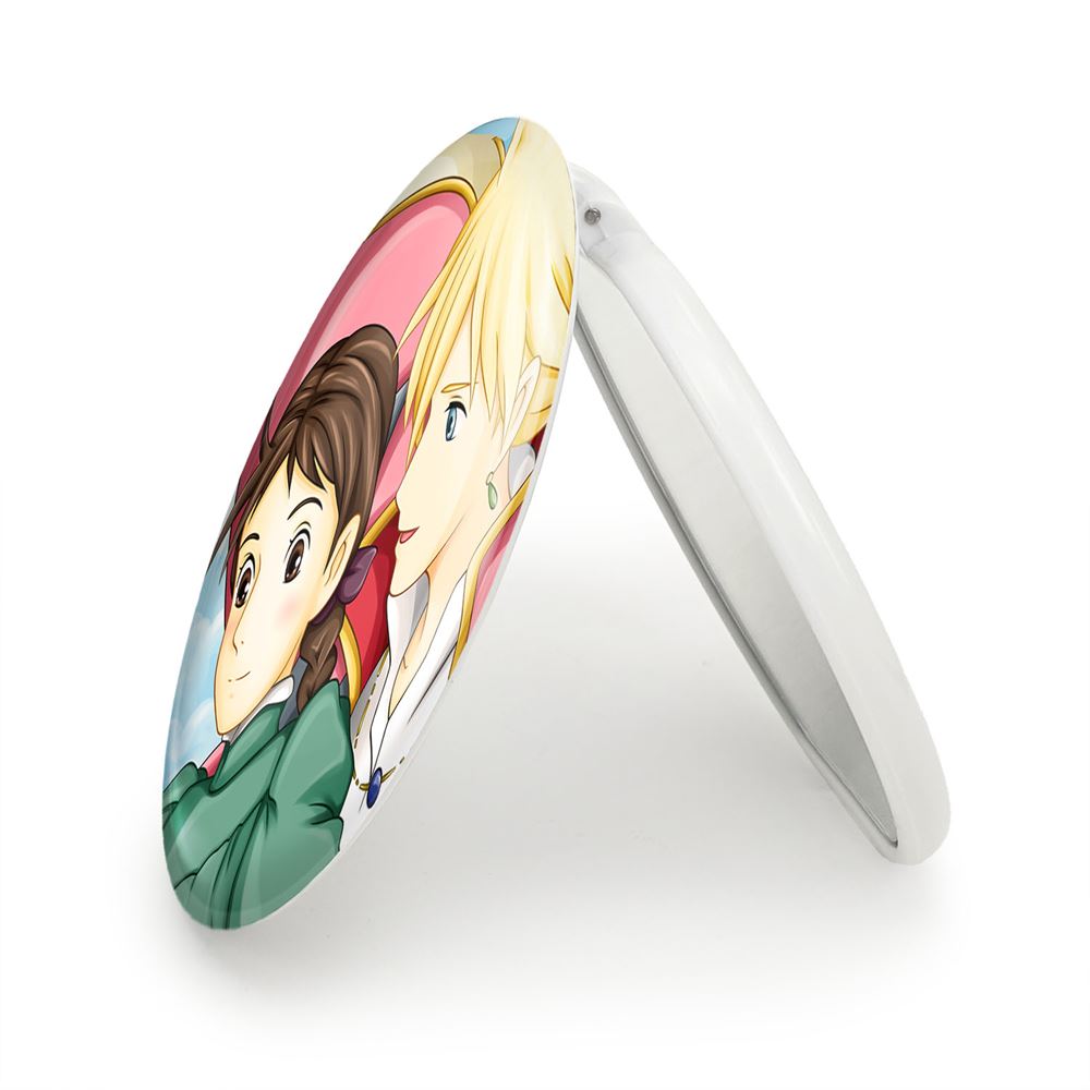 آینه های تاشو هاول و سوفی انیمه قلعه متحرک هاول خندالو، از جنس پلاستیک فشرده ABS تولید شده و به رنگ سفید می باشد. یکی از آینه ها ابعاد واقعی را نشان داده و دیگری با قابلیت بزرگنمایی، جزئیات را بهتر نمایش می دهد. ابعاد هر یک از آینه ها، دایره ای به قطر 7.5 سانت می باشد که نه خیلی بزرگ و غیر قابل استفاده در کیف آرایشی ست و نه خیلی کوچک که تصویر خاصی در آن مشاهده نشود. آینه تاشو هاول و سوفی انیمه قلعه متحرک هاول سایزی استاندارد و کارآمد دارد و در هر کیفی جا میگیرد. چاپ طرح بوسیله چاپگرهای دیجیتال شش رنگ با شفافیت و کیفیتی مثال زدنی بر روی یک وجه از بدنه ی آینه انجام گرفته و با روکش لمینت حرارتی پوشیده شده که در مقابل آسیب و خط و خش مقاوم بوده و کیفیت بالایی دارد. درب آینه بوسیله قفل بدنه ی آن، باز نمی ماند و کاملا بسته می شود و مناسب قرار گیری در کیف لوازم آرایش و کیف های کوچک دستی نیز هست. آینه های تاشو هاول و سوفی انیمه قلعه متحرک هاول خندالو با تنوع طرحی بسیار بالا، سلیقه هر نوع مخاطبی را تامین میکند.