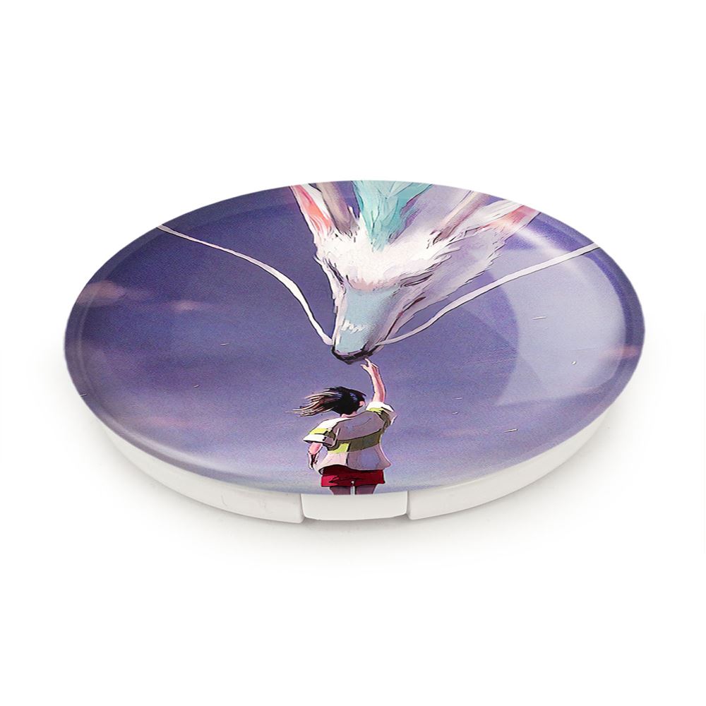 آینه های تاشو هاکو و چیهیرو انیمه شهر اشباح Spirited Away خندالو، از جنس پلاستیک فشرده ABS تولید شده و به رنگ سفید می باشد. یکی از آینه ها ابعاد واقعی را نشان داده و دیگری با قابلیت بزرگنمایی، جزئیات را بهتر نمایش می دهد.