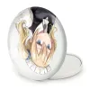 آینه های تاشو هایاساکا انیمه کاگویا ساما خندالو، از جنس پلاستیک فشرده ABS تولید شده و به رنگ سفید می باشد. یکی از آینه ها ابعاد واقعی را نشان داده و دیگری با قابلیت بزرگنمایی، جزئیات را بهتر نمایش می دهد. ابعاد هر یک از آینه ها، دایره ای به قطر 7.5 سانت می باشد که نه خیلی بزرگ و غیر قابل استفاده در کیف آرایشی ست و نه خیلی کوچک که تصویر خاصی در آن مشاهده نشود. آینه تاشو هایاساکا انیمه کاگویا ساما سایزی استاندارد و کارآمد دارد و در هر کیفی جا میگیرد. چاپ طرح بوسیله چاپگرهای دیجیتال شش رنگ با شفافیت و کیفیتی مثال زدنی بر روی یک وجه از بدنه ی آینه انجام گرفته و با روکش لمینت حرارتی پوشیده شده که در مقابل آسیب و خط و خش مقاوم بوده و کیفیت بالایی دارد. درب آینه بوسیله قفل بدنه ی آن، باز نمی ماند و کاملا بسته می شود و مناسب قرار گیری در کیف لوازم آرایش و کیف های کوچک دستی نیز هست. آینه های تاشو هایاساکا انیمه کاگویا ساما خندالو با تنوع طرحی بسیار بالا، سلیقه هر نوع مخاطبی را تامین میکند.
