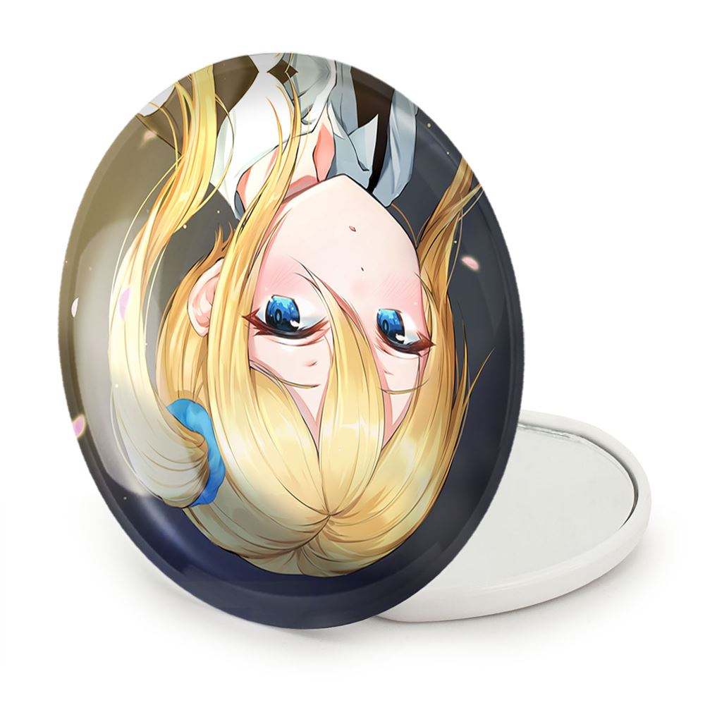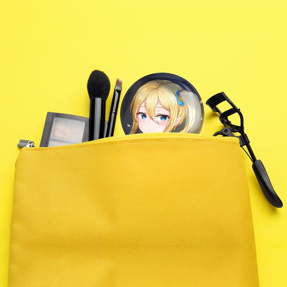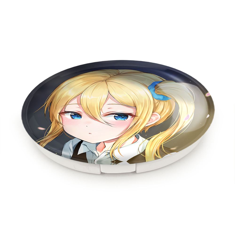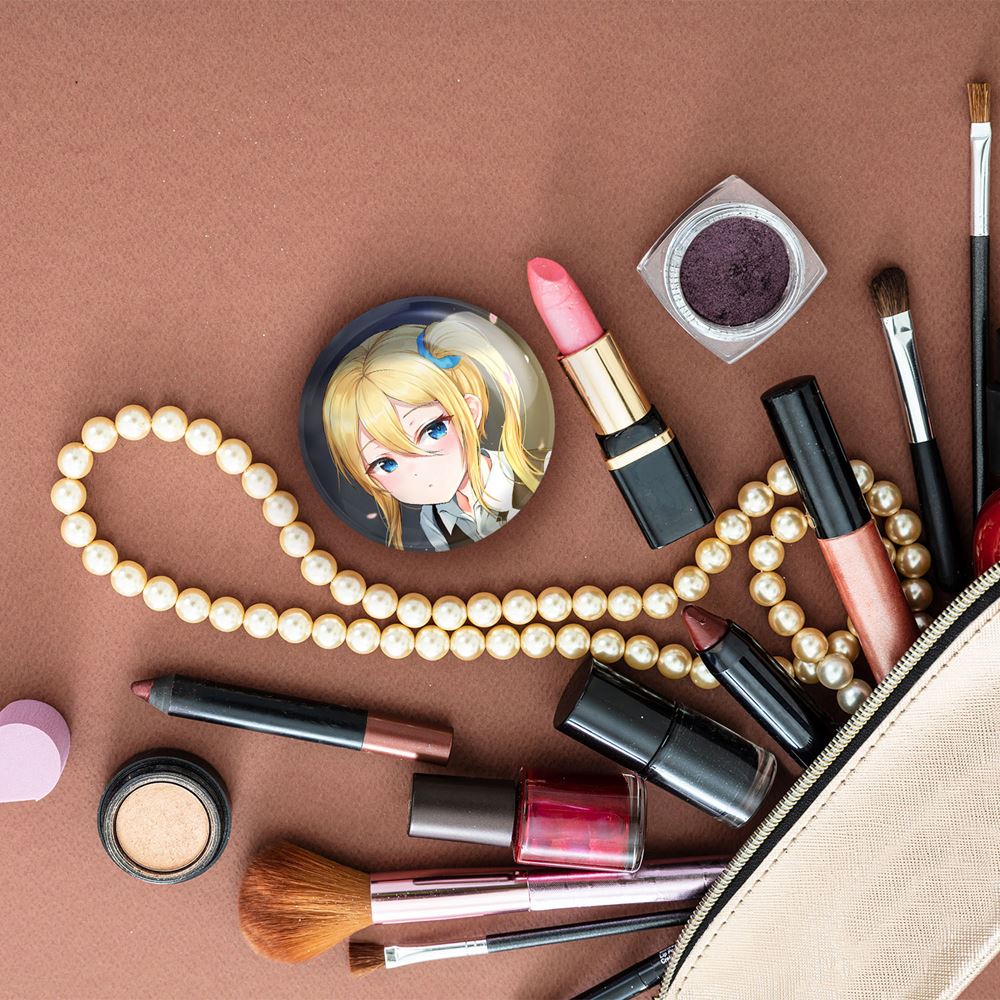 آینه های تاشو هایاساکا انیمه کاگویا ساما خندالو، از جنس پلاستیک فشرده ABS تولید شده و به رنگ سفید می باشد. یکی از آینه ها ابعاد واقعی را نشان داده و دیگری با قابلیت بزرگنمایی، جزئیات را بهتر نمایش می دهد. ابعاد هر یک از آینه ها، دایره ای به قطر 7.5 سانت می باشد که نه خیلی بزرگ و غیر قابل استفاده در کیف آرایشی ست و نه خیلی کوچک که تصویر خاصی در آن مشاهده نشود. آینه تاشو هایاساکا انیمه کاگویا ساما سایزی استاندارد و کارآمد دارد و در هر کیفی جا میگیرد. چاپ طرح بوسیله چاپگرهای دیجیتال شش رنگ با شفافیت و کیفیتی مثال زدنی بر روی یک وجه از بدنه ی آینه انجام گرفته و با روکش لمینت حرارتی پوشیده شده که در مقابل آسیب و خط و خش مقاوم بوده و کیفیت بالایی دارد. درب آینه بوسیله قفل بدنه ی آن، باز نمی ماند و کاملا بسته می شود و مناسب قرار گیری در کیف لوازم آرایش و کیف های کوچک دستی نیز هست. آینه های تاشو هایاساکا انیمه کاگویا ساما خندالو با تنوع طرحی بسیار بالا، سلیقه هر نوع مخاطبی را تامین میکند.