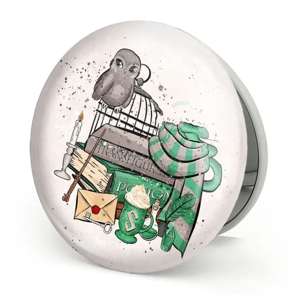 آینه های تاشو هری پاتر خانه اسلیترین خندالو، از جنس پلاستیک فشرده ABS تولید شده و به رنگ سفید می باشد. یکی از آینه ها ابعاد واقعی را نشان داده و دیگری با قابلیت بزرگنمایی، جزئیات را بهتر نمایش می دهد.