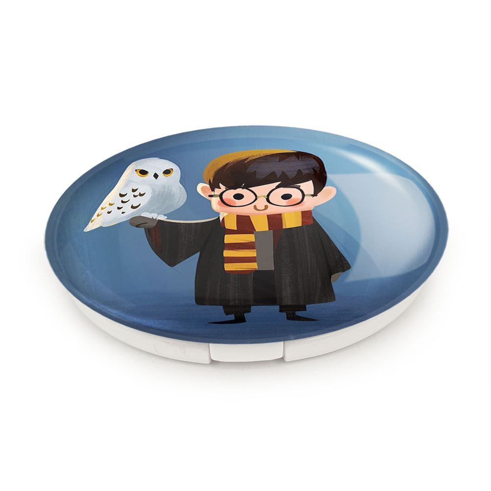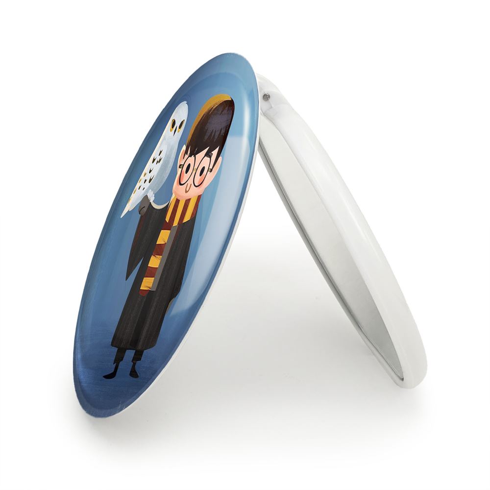 آینه های تاشو هری پاتر Harry Potter خندالو، از جنس پلاستیک فشرده ABS تولید شده و به رنگ سفید می باشد. یکی از آینه ها ابعاد واقعی را نشان داده و دیگری با قابلیت بزرگنمایی، جزئیات را بهتر نمایش می دهد. ابعاد هر یک از آینه ها، دایره ای به قطر 7.5 سانت می باشد که نه خیلی بزرگ و غیر قابل استفاده در کیف آرایشی ست و نه خیلی کوچک که تصویر خاصی در آن مشاهده نشود. آینه تاشو هری پاتر Harry Potter سایزی استاندارد و کارآمد دارد و در هر کیفی جا میگیرد. چاپ طرح بوسیله چاپگرهای دیجیتال شش رنگ با شفافیت و کیفیتی مثال زدنی بر روی یک وجه از بدنه ی آینه انجام گرفته و با روکش لمینت حرارتی پوشیده شده که در مقابل آسیب و خط و خش مقاوم بوده و کیفیت بالایی دارد. درب آینه بوسیله قفل بدنه ی آن، باز نمی ماند و کاملا بسته می شود و مناسب قرار گیری در کیف لوازم آرایش و کیف های کوچک دستی نیز هست. آینه های تاشو هری پاتر Harry Potter خندالو با تنوع طرحی بسیار بالا، سلیقه هر نوع مخاطبی را تامین میکند.