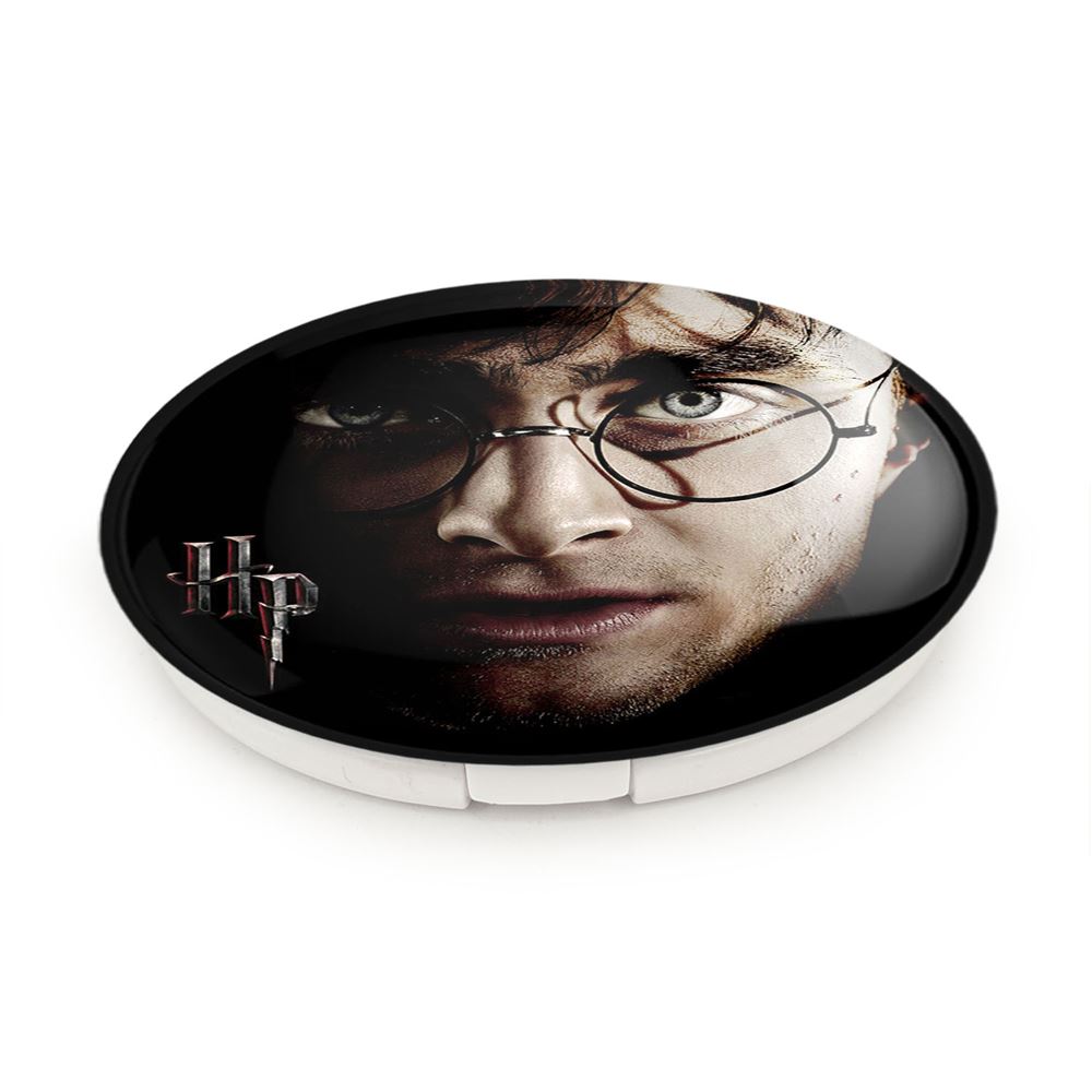 آینه های تاشو هری پاتر Harry Potter خندالو، از جنس پلاستیک فشرده ABS تولید شده و به رنگ سفید می باشد. یکی از آینه ها ابعاد واقعی را نشان داده و دیگری با قابلیت بزرگنمایی، جزئیات را بهتر نمایش می دهد. ابعاد هر یک از آینه ها، دایره ای به قطر 7.5 سانت می باشد که نه خیلی بزرگ و غیر قابل استفاده در کیف آرایشی ست و نه خیلی کوچک که تصویر خاصی در آن مشاهده نشود. آینه تاشو هری پاتر Harry Potter سایزی استاندارد و کارآمد دارد و در هر کیفی جا میگیرد. چاپ طرح بوسیله چاپگرهای دیجیتال شش رنگ با شفافیت و کیفیتی مثال زدنی بر روی یک وجه از بدنه ی آینه انجام گرفته و با روکش لمینت حرارتی پوشیده شده که در مقابل آسیب و خط و خش مقاوم بوده و کیفیت بالایی دارد. درب آینه بوسیله قفل بدنه ی آن، باز نمی ماند و کاملا بسته می شود و مناسب قرار گیری در کیف لوازم آرایش و کیف های کوچک دستی نیز هست. آینه های تاشو هری پاتر Harry Potter خندالو با تنوع طرحی بسیار بالا، سلیقه هر نوع مخاطبی را تامین میکند.