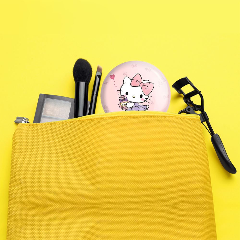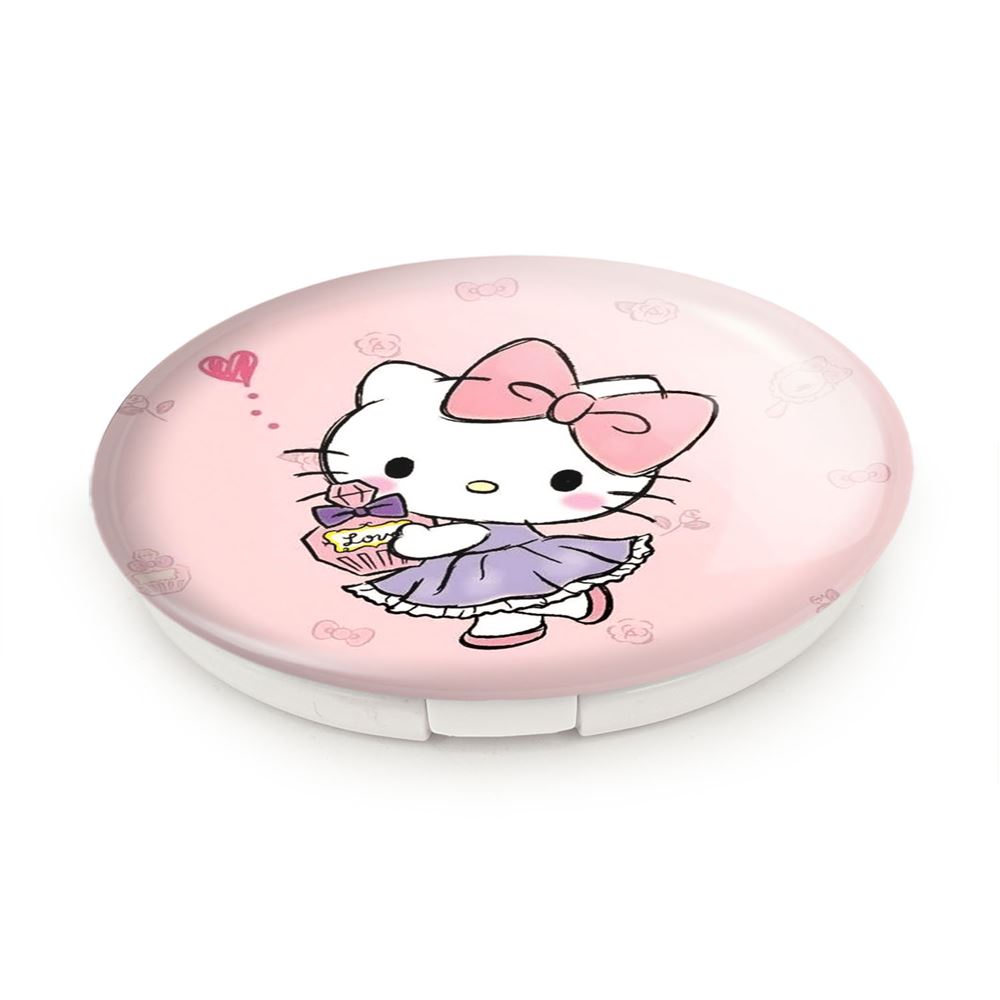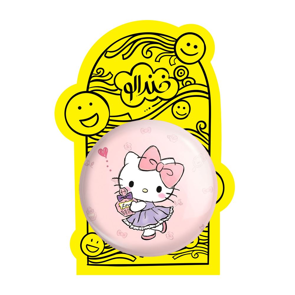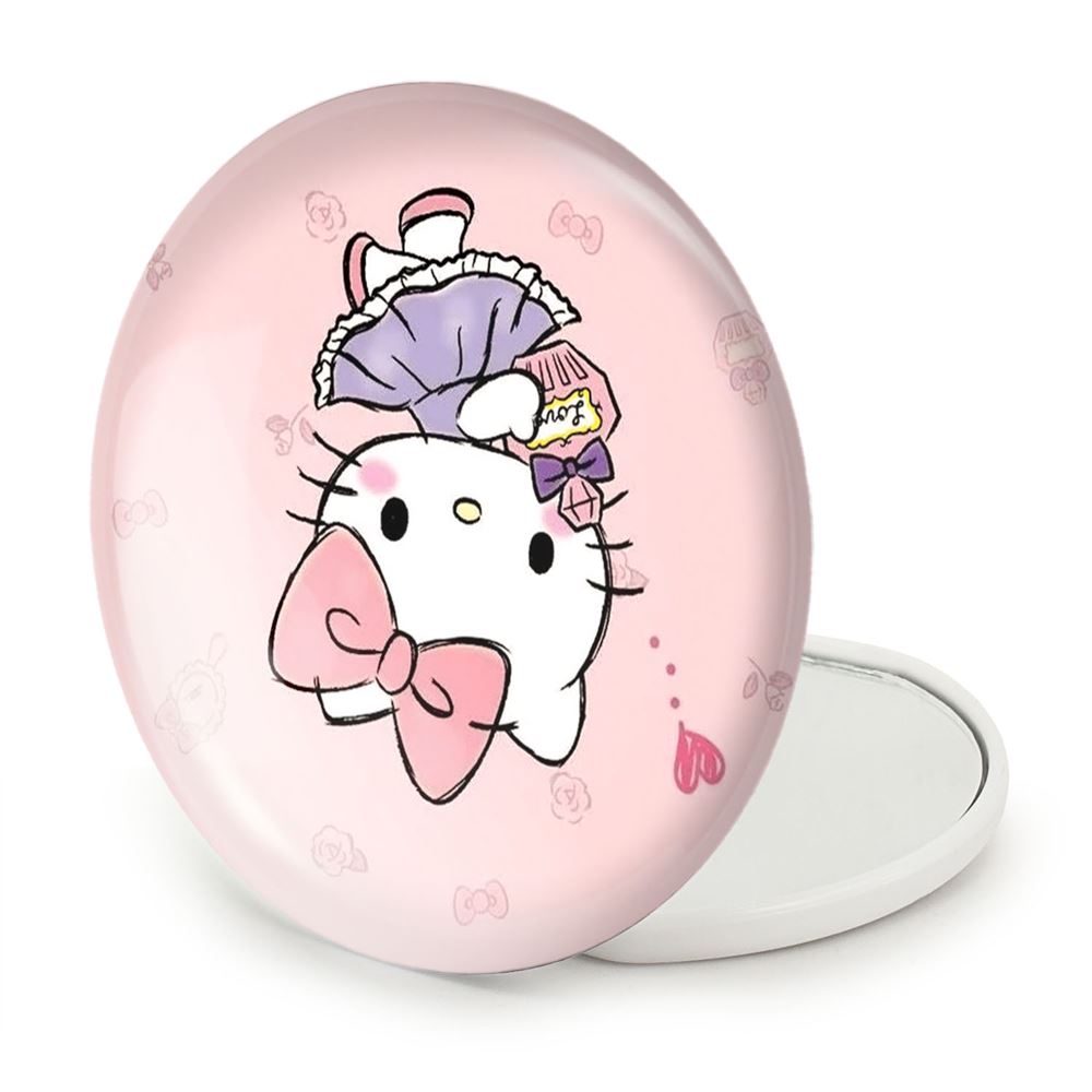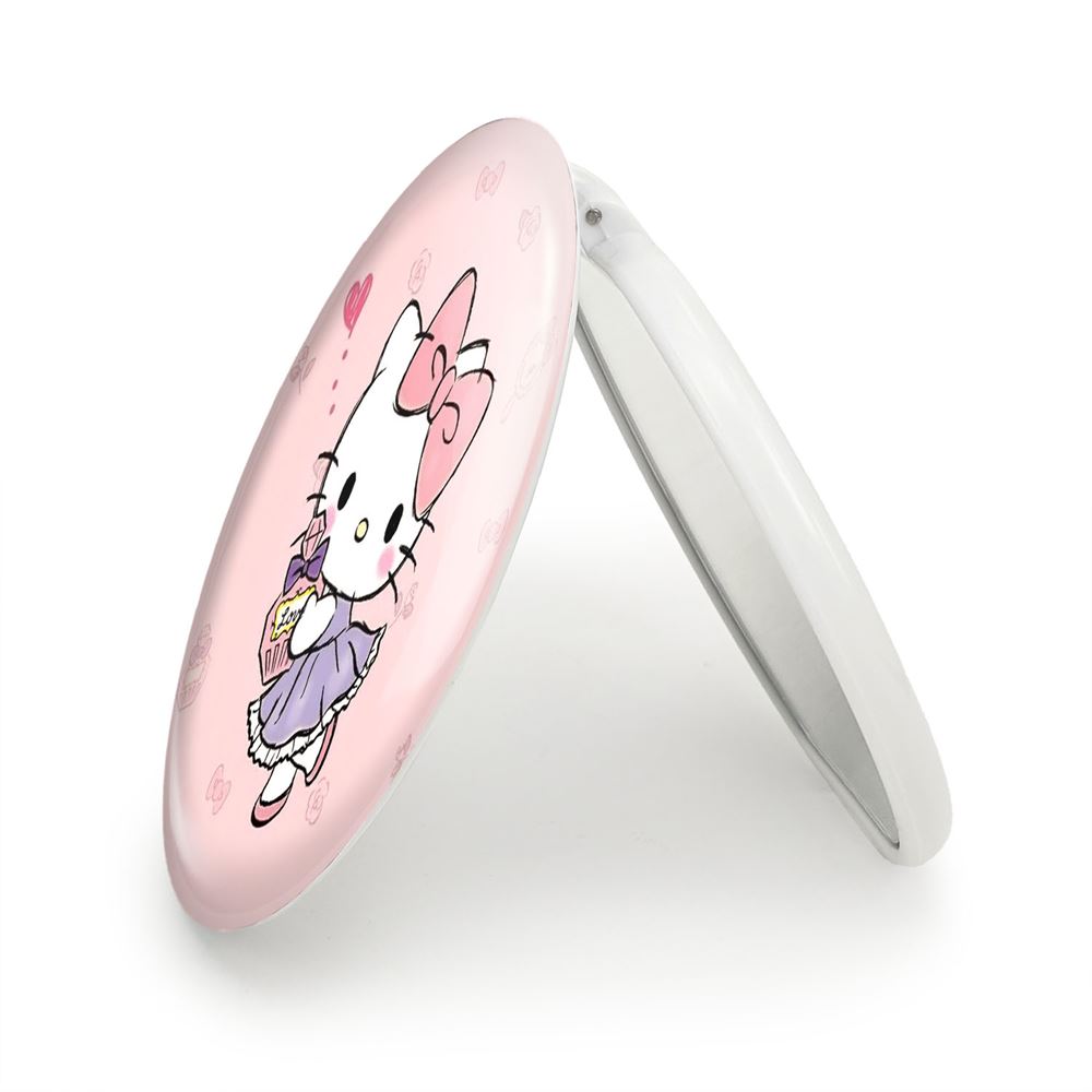 آینه های تاشو هلو کیتی خندالو، از جنس پلاستیک فشرده ABS تولید شده و به رنگ سفید می باشد. یکی از آینه ها ابعاد واقعی را نشان داده و دیگری با قابلیت بزرگنمایی، جزئیات را بهتر نمایش می دهد. ابعاد هر یک از آینه ها، دایره ای به قطر 7.5 سانت می باشد که نه خیلی بزرگ و غیر قابل استفاده در کیف آرایشی ست و نه خیلی کوچک که تصویر خاصی در آن مشاهده نشود. آینه تاشو هلو کیتی سایزی استاندارد و کارآمد دارد و در هر کیفی جا میگیرد. چاپ طرح بوسیله چاپگرهای دیجیتال شش رنگ با شفافیت و کیفیتی مثال زدنی بر روی یک وجه از بدنه ی آینه انجام گرفته و با روکش لمینت حرارتی پوشیده شده که در مقابل آسیب و خط و خش مقاوم بوده و کیفیت بالایی دارد. درب آینه بوسیله قفل بدنه ی آن، باز نمی ماند و کاملا بسته می شود و مناسب قرار گیری در کیف لوازم آرایش و کیف های کوچک دستی نیز هست. آینه های تاشو هلو کیتی خندالو با تنوع طرحی بسیار بالا، سلیقه هر نوع مخاطبی را تامین میکند.