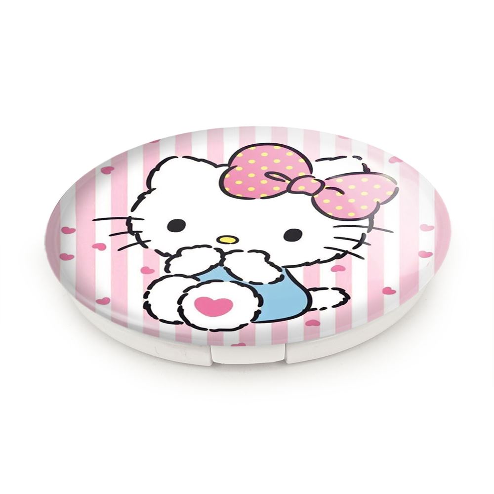 آینه های تاشو هلو کیتی Hello Kitty خندالو، از جنس پلاستیک فشرده ABS تولید شده و به رنگ سفید می باشد. یکی از آینه ها ابعاد واقعی را نشان داده و دیگری با قابلیت بزرگنمایی، جزئیات را بهتر نمایش می دهد.