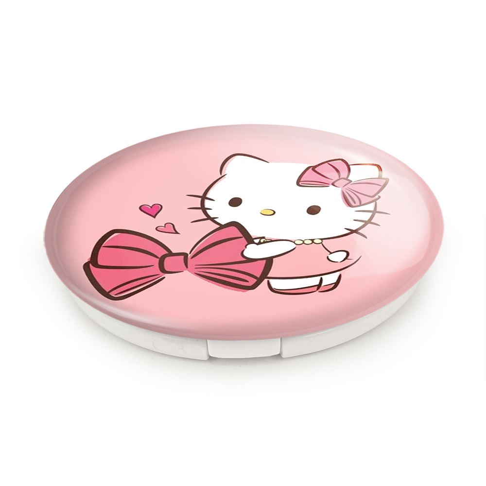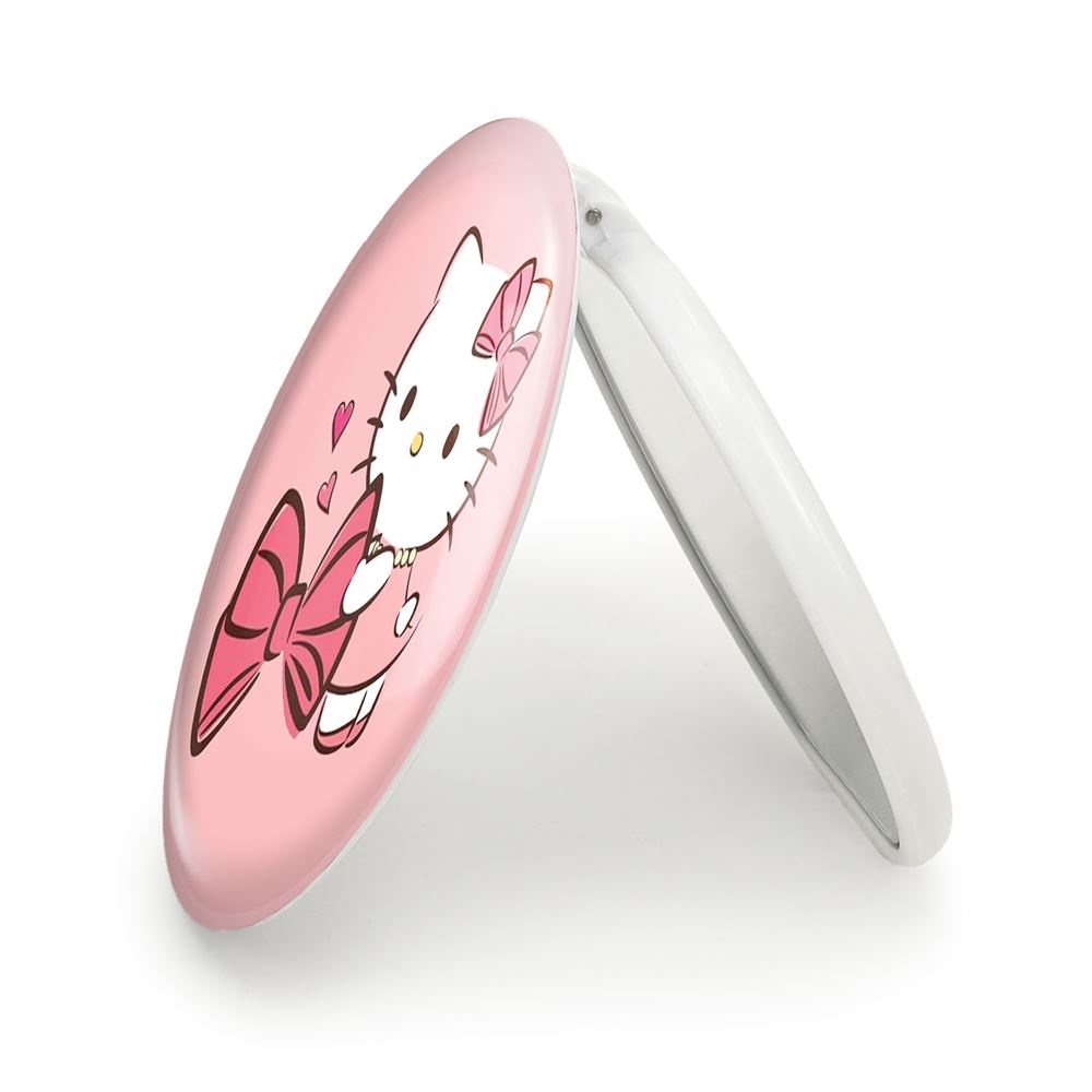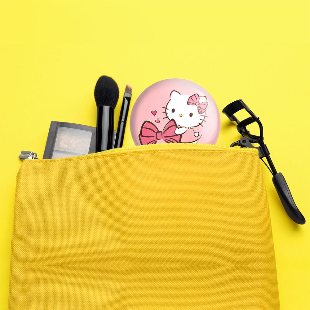 آینه های تاشو هلو کیتی Hello Kitty خندالو، از جنس پلاستیک فشرده ABS تولید شده و به رنگ سفید می باشد. یکی از آینه ها ابعاد واقعی را نشان داده و دیگری با قابلیت بزرگنمایی، جزئیات را بهتر نمایش می دهد. ابعاد هر یک از آینه ها، دایره ای به قطر 7.5 سانت می باشد که نه خیلی بزرگ و غیر قابل استفاده در کیف آرایشی ست و نه خیلی کوچک که تصویر خاصی در آن مشاهده نشود. آینه تاشو هلو کیتی Hello Kitty سایزی استاندارد و کارآمد دارد و در هر کیفی جا میگیرد. چاپ طرح بوسیله چاپگرهای دیجیتال شش رنگ با شفافیت و کیفیتی مثال زدنی بر روی یک وجه از بدنه ی آینه انجام گرفته و با روکش لمینت حرارتی پوشیده شده که در مقابل آسیب و خط و خش مقاوم بوده و کیفیت بالایی دارد. درب آینه بوسیله قفل بدنه ی آن، باز نمی ماند و کاملا بسته می شود و مناسب قرار گیری در کیف لوازم آرایش و کیف های کوچک دستی نیز هست. آینه های تاشو هلو کیتی Hello Kitty خندالو با تنوع طرحی بسیار بالا، سلیقه هر نوع مخاطبی را تامین میکند.