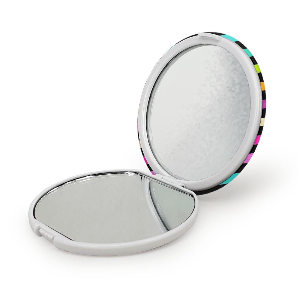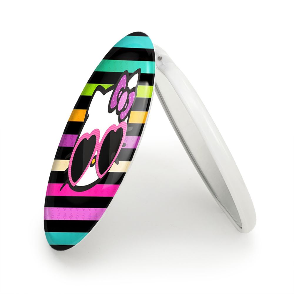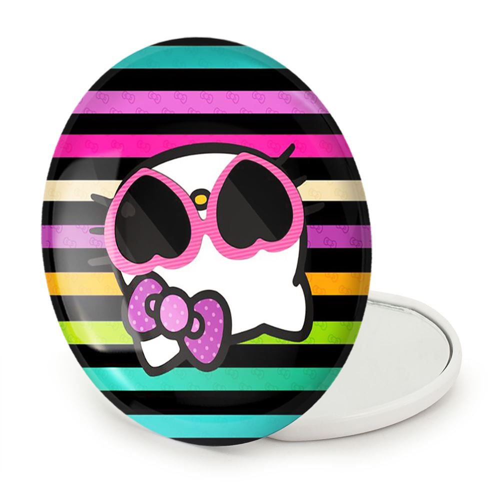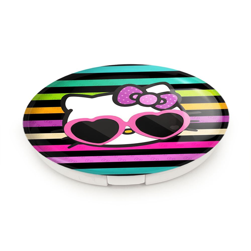 آینه های تاشو هلو کیتی Hello Kitty خندالو، از جنس پلاستیک فشرده ABS تولید شده و به رنگ سفید می باشد. یکی از آینه ها ابعاد واقعی را نشان داده و دیگری با قابلیت بزرگنمایی، جزئیات را بهتر نمایش می دهد. ابعاد هر یک از آینه ها، دایره ای به قطر 7.5 سانت می باشد که نه خیلی بزرگ و غیر قابل استفاده در کیف آرایشی ست و نه خیلی کوچک که تصویر خاصی در آن مشاهده نشود. آینه تاشو هلو کیتی Hello Kitty سایزی استاندارد و کارآمد دارد و در هر کیفی جا میگیرد. چاپ طرح بوسیله چاپگرهای دیجیتال شش رنگ با شفافیت و کیفیتی مثال زدنی بر روی یک وجه از بدنه ی آینه انجام گرفته و با روکش لمینت حرارتی پوشیده شده که در مقابل آسیب و خط و خش مقاوم بوده و کیفیت بالایی دارد. درب آینه بوسیله قفل بدنه ی آن، باز نمی ماند و کاملا بسته می شود و مناسب قرار گیری در کیف لوازم آرایش و کیف های کوچک دستی نیز هست. آینه های تاشو هلو کیتی Hello Kitty خندالو با تنوع طرحی بسیار بالا، سلیقه هر نوع مخاطبی را تامین میکند.