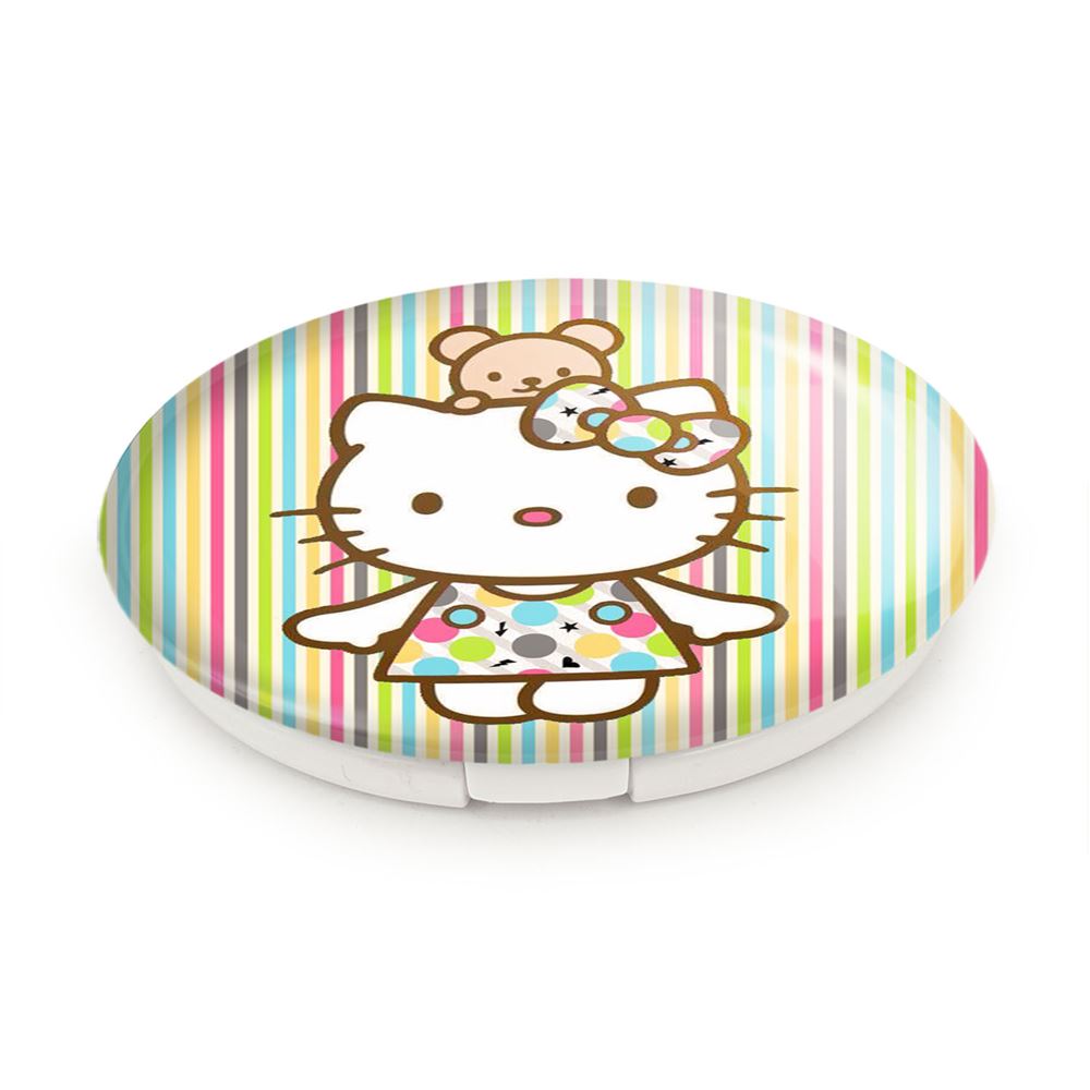 آینه های تاشو هلو کیتی Hello Kitty خندالو، از جنس پلاستیک فشرده ABS تولید شده و به رنگ سفید می باشد. یکی از آینه ها ابعاد واقعی را نشان داده و دیگری با قابلیت بزرگنمایی، جزئیات را بهتر نمایش می دهد.