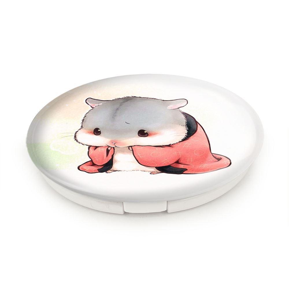 آینه های تاشو همستر حیوانات بامزه خندالو، از جنس پلاستیک فشرده ABS تولید شده و به رنگ سفید می باشد. یکی از آینه ها ابعاد واقعی را نشان داده و دیگری با قابلیت بزرگنمایی، جزئیات را بهتر نمایش می دهد. ابعاد هر یک از آینه ها، دایره ای به قطر 7.5 سانت می باشد که نه خیلی بزرگ و غیر قابل استفاده در کیف آرایشی ست و نه خیلی کوچک که تصویر خاصی در آن مشاهده نشود. آینه تاشو همستر حیوانات بامزه سایزی استاندارد و کارآمد دارد و در هر کیفی جا میگیرد. چاپ طرح بوسیله چاپگرهای دیجیتال شش رنگ با شفافیت و کیفیتی مثال زدنی بر روی یک وجه از بدنه ی آینه انجام گرفته و با روکش لمینت حرارتی پوشیده شده که در مقابل آسیب و خط و خش مقاوم بوده و کیفیت بالایی دارد. درب آینه بوسیله قفل بدنه ی آن، باز نمی ماند و کاملا بسته می شود و مناسب قرار گیری در کیف لوازم آرایش و کیف های کوچک دستی نیز هست. آینه های تاشو همستر حیوانات بامزه خندالو با تنوع طرحی بسیار بالا، سلیقه هر نوع مخاطبی را تامین میکند.