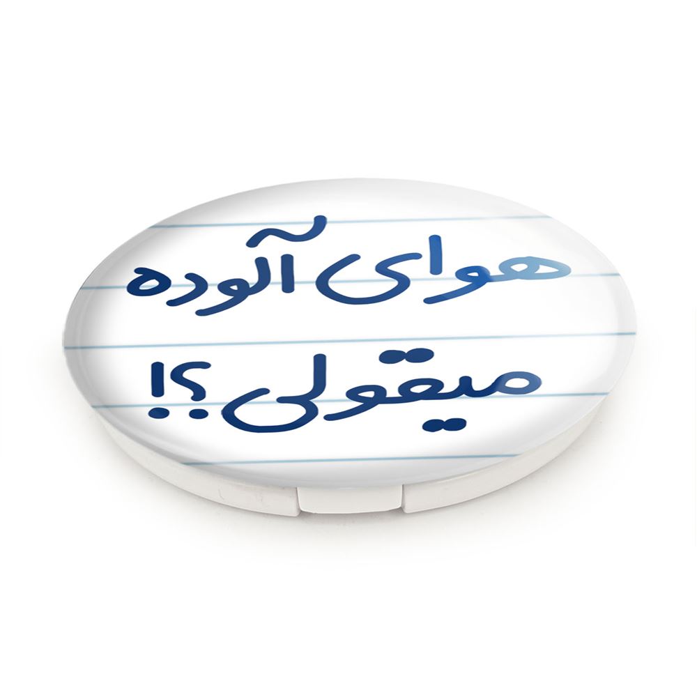 آینه های تاشو هوای آلوده میقولی؟! خندالو، از جنس پلاستیک فشرده ABS تولید شده و به رنگ سفید می باشد. یکی از آینه ها ابعاد واقعی را نشان داده و دیگری با قابلیت بزرگنمایی، جزئیات را بهتر نمایش می دهد. ابعاد هر یک از آینه ها، دایره ای به قطر 7.5 سانت می باشد که نه خیلی بزرگ و غیر قابل استفاده در کیف آرایشی ست و نه خیلی کوچک که تصویر خاصی در آن مشاهده نشود. آینه تاشو هوای آلوده میقولی؟! سایزی استاندارد و کارآمد دارد و در هر کیفی جا میگیرد. چاپ طرح بوسیله چاپگرهای دیجیتال شش رنگ با شفافیت و کیفیتی مثال زدنی بر روی یک وجه از بدنه ی آینه انجام گرفته و با روکش لمینت حرارتی پوشیده شده که در مقابل آسیب و خط و خش مقاوم بوده و کیفیت بالایی دارد. درب آینه بوسیله قفل بدنه ی آن، باز نمی ماند و کاملا بسته می شود و مناسب قرار گیری در کیف لوازم آرایش و کیف های کوچک دستی نیز هست. آینه های تاشو هوای آلوده میقولی؟! خندالو با تنوع طرحی بسیار بالا، سلیقه هر نوع مخاطبی را تامین میکند.
