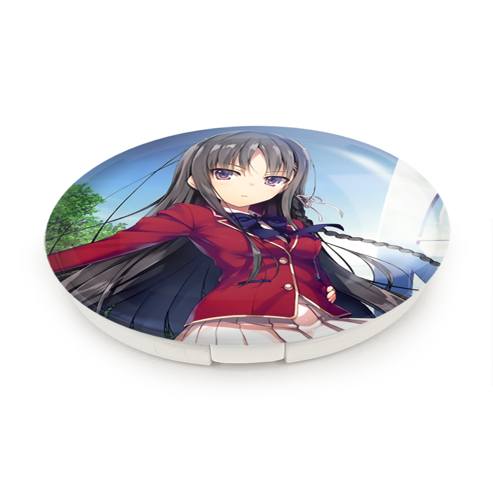 آینه های تاشو هوریکیتا انیمه کلاس نخبگان خندالو، از جنس پلاستیک فشرده ABS تولید شده و به رنگ سفید می باشد. یکی از آینه ها ابعاد واقعی را نشان داده و دیگری با قابلیت بزرگنمایی، جزئیات را بهتر نمایش می دهد. ابعاد هر یک از آینه ها، دایره ای به قطر 7.5 سانت می باشد که نه خیلی بزرگ و غیر قابل استفاده در کیف آرایشی ست و نه خیلی کوچک که تصویر خاصی در آن مشاهده نشود. آینه تاشو هوریکیتا انیمه کلاس نخبگان سایزی استاندارد و کارآمد دارد و در هر کیفی جا میگیرد. چاپ طرح بوسیله چاپگرهای دیجیتال شش رنگ با شفافیت و کیفیتی مثال زدنی بر روی یک وجه از بدنه ی آینه انجام گرفته و با روکش لمینت حرارتی پوشیده شده که در مقابل آسیب و خط و خش مقاوم بوده و کیفیت بالایی دارد. درب آینه بوسیله قفل بدنه ی آن، باز نمی ماند و کاملا بسته می شود و مناسب قرار گیری در کیف لوازم آرایش و کیف های کوچک دستی نیز هست. آینه های تاشو هوریکیتا انیمه کلاس نخبگان خندالو با تنوع طرحی بسیار بالا، سلیقه هر نوع مخاطبی را تامین میکند.