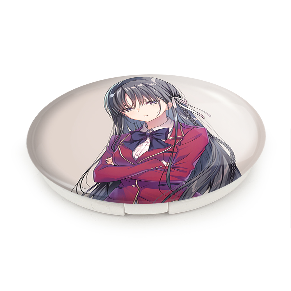 آینه های تاشو هوریکیتا انیمه کلاس نخبگان خندالو، از جنس پلاستیک فشرده ABS تولید شده و به رنگ سفید می باشد. یکی از آینه ها ابعاد واقعی را نشان داده و دیگری با قابلیت بزرگنمایی، جزئیات را بهتر نمایش می دهد. ابعاد هر یک از آینه ها، دایره ای به قطر 7.5 سانت می باشد که نه خیلی بزرگ و غیر قابل استفاده در کیف آرایشی ست و نه خیلی کوچک که تصویر خاصی در آن مشاهده نشود. آینه تاشو هوریکیتا انیمه کلاس نخبگان سایزی استاندارد و کارآمد دارد و در هر کیفی جا میگیرد. چاپ طرح بوسیله چاپگرهای دیجیتال شش رنگ با شفافیت و کیفیتی مثال زدنی بر روی یک وجه از بدنه ی آینه انجام گرفته و با روکش لمینت حرارتی پوشیده شده که در مقابل آسیب و خط و خش مقاوم بوده و کیفیت بالایی دارد. درب آینه بوسیله قفل بدنه ی آن، باز نمی ماند و کاملا بسته می شود و مناسب قرار گیری در کیف لوازم آرایش و کیف های کوچک دستی نیز هست. آینه های تاشو هوریکیتا انیمه کلاس نخبگان خندالو با تنوع طرحی بسیار بالا، سلیقه هر نوع مخاطبی را تامین میکند.