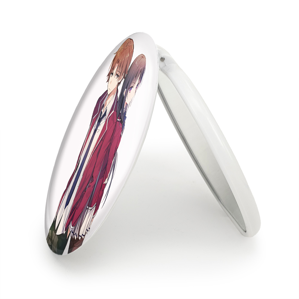 آینه های تاشو هوریکیتا و آیانوکوجی انیمه کلاس نخبگان خندالو، از جنس پلاستیک فشرده ABS تولید شده و به رنگ سفید می باشد. یکی از آینه ها ابعاد واقعی را نشان داده و دیگری با قابلیت بزرگنمایی، جزئیات را بهتر نمایش می دهد. ابعاد هر یک از آینه ها، دایره ای به قطر 7.5 سانت می باشد که نه خیلی بزرگ و غیر قابل استفاده در کیف آرایشی ست و نه خیلی کوچک که تصویر خاصی در آن مشاهده نشود. آینه تاشو هوریکیتا و آیانوکوجی انیمه کلاس نخبگان سایزی استاندارد و کارآمد دارد و در هر کیفی جا میگیرد. چاپ طرح بوسیله چاپگرهای دیجیتال شش رنگ با شفافیت و کیفیتی مثال زدنی بر روی یک وجه از بدنه ی آینه انجام گرفته و با روکش لمینت حرارتی پوشیده شده که در مقابل آسیب و خط و خش مقاوم بوده و کیفیت بالایی دارد. درب آینه بوسیله قفل بدنه ی آن، باز نمی ماند و کاملا بسته می شود و مناسب قرار گیری در کیف لوازم آرایش و کیف های کوچک دستی نیز هست. آینه های تاشو هوریکیتا و آیانوکوجی انیمه کلاس نخبگان خندالو با تنوع طرحی بسیار بالا، سلیقه هر نوع مخاطبی را تامین میکند.