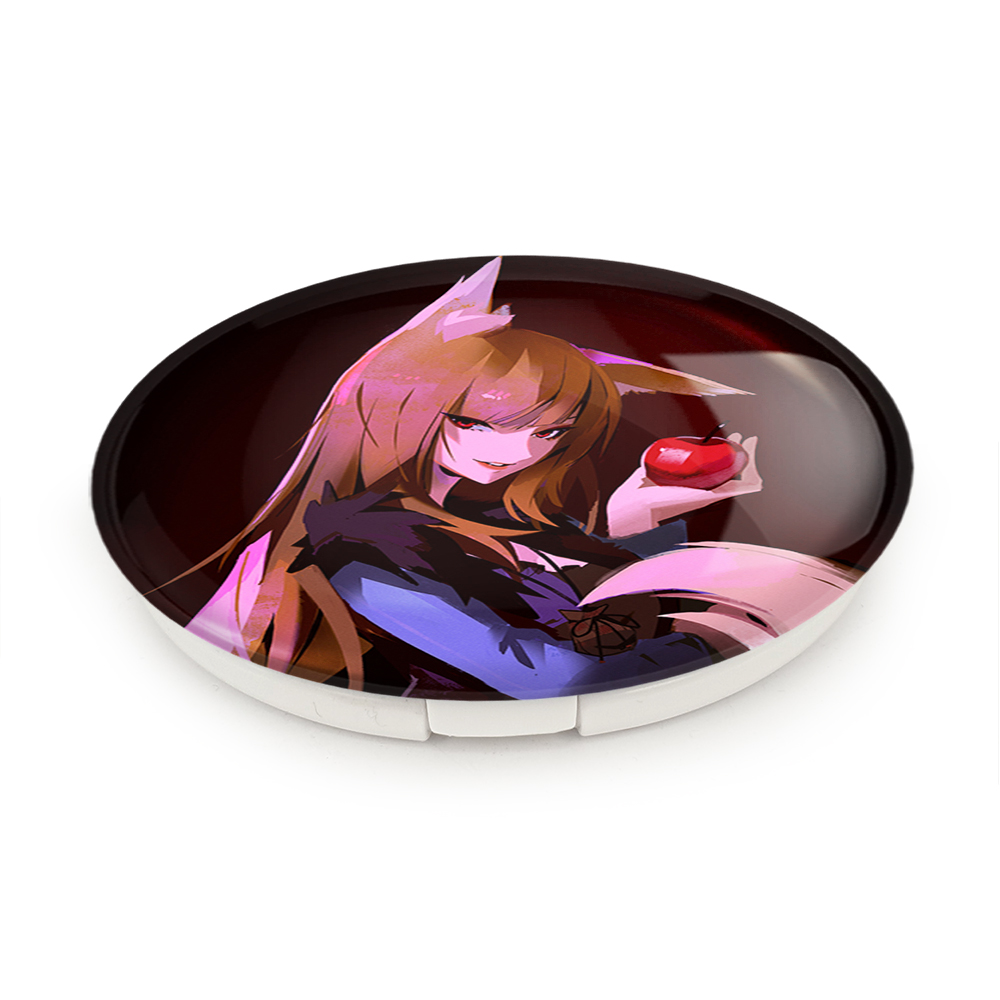 آینه های تاشو هولو انیمه ادویه و گرگ خندالو، از جنس پلاستیک فشرده ABS تولید شده و به رنگ سفید می باشد. یکی از آینه ها ابعاد واقعی را نشان داده و دیگری با قابلیت بزرگنمایی، جزئیات را بهتر نمایش می دهد.