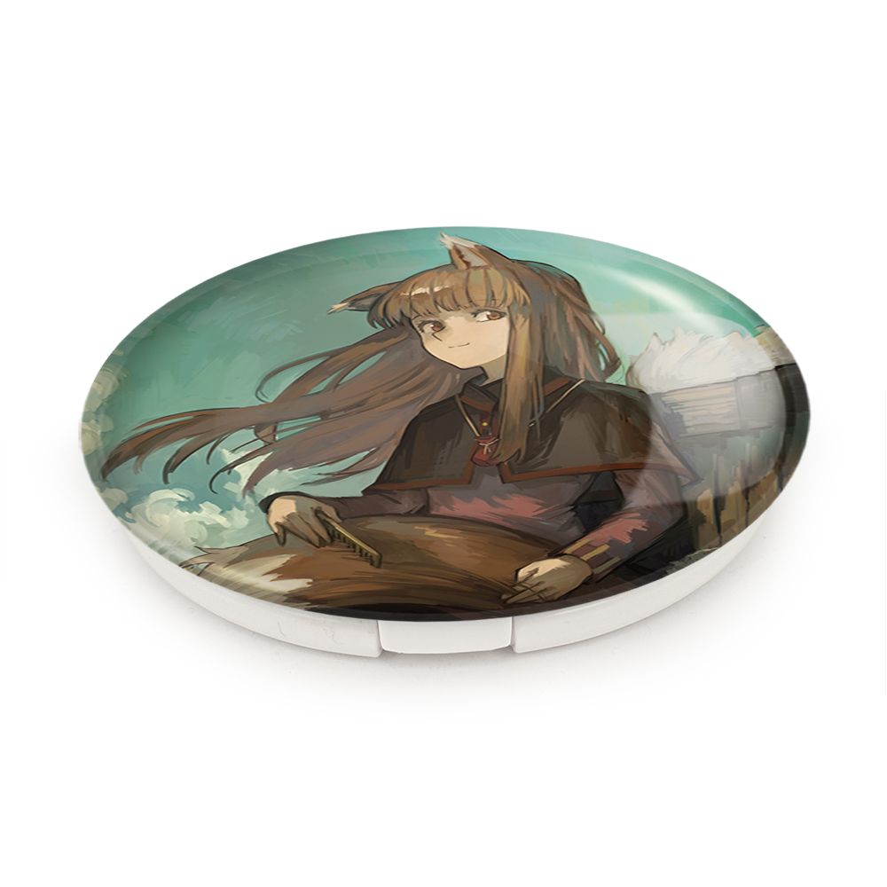 آینه های تاشو هولو انیمه ادویه و گرگ خندالو، از جنس پلاستیک فشرده ABS تولید شده و به رنگ سفید می باشد. یکی از آینه ها ابعاد واقعی را نشان داده و دیگری با قابلیت بزرگنمایی، جزئیات را بهتر نمایش می دهد.