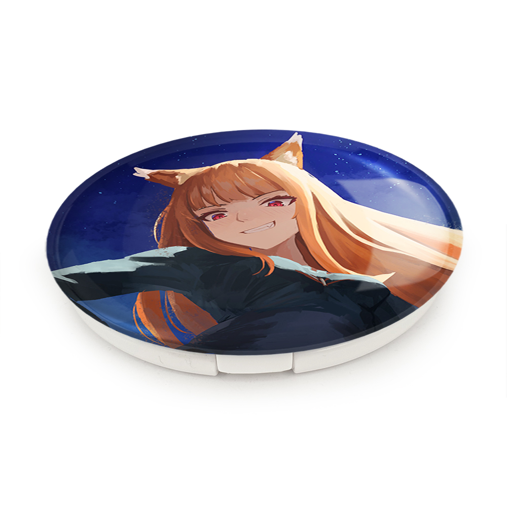 آینه های تاشو هولو انیمه ادویه و گرگ خندالو، از جنس پلاستیک فشرده ABS تولید شده و به رنگ سفید می باشد. یکی از آینه ها ابعاد واقعی را نشان داده و دیگری با قابلیت بزرگنمایی، جزئیات را بهتر نمایش می دهد.