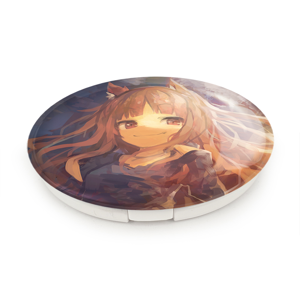 آینه های تاشو هولو انیمه ادویه و گرگ خندالو، از جنس پلاستیک فشرده ABS تولید شده و به رنگ سفید می باشد. یکی از آینه ها ابعاد واقعی را نشان داده و دیگری با قابلیت بزرگنمایی، جزئیات را بهتر نمایش می دهد.