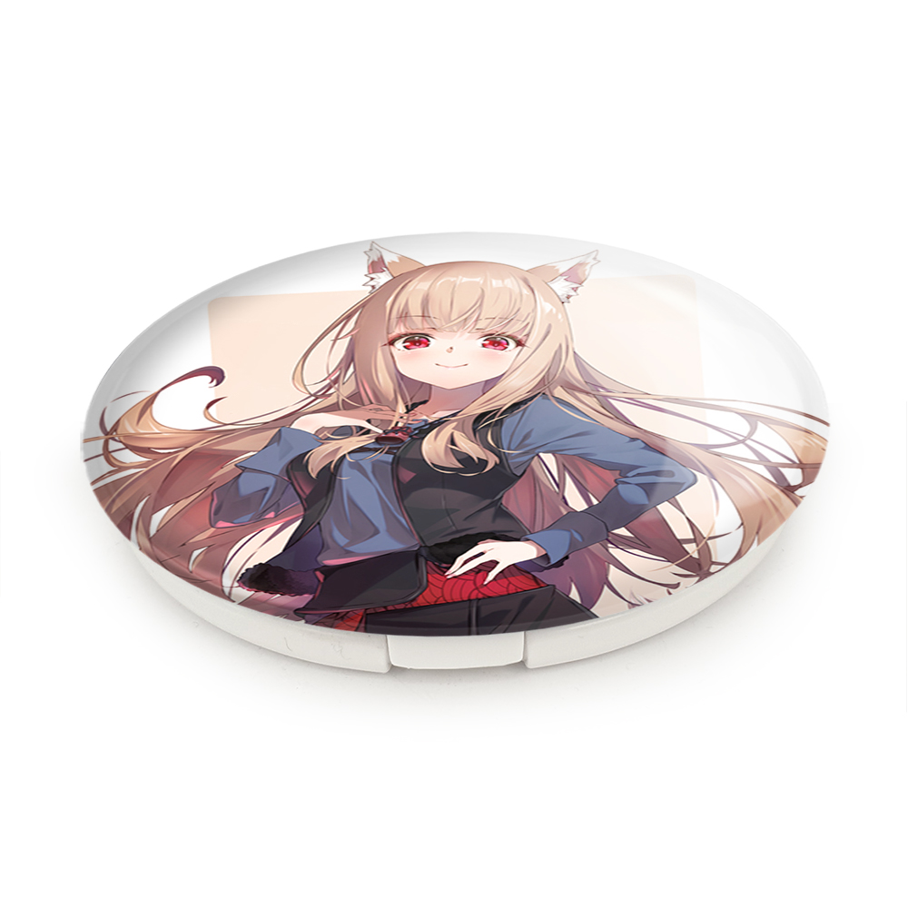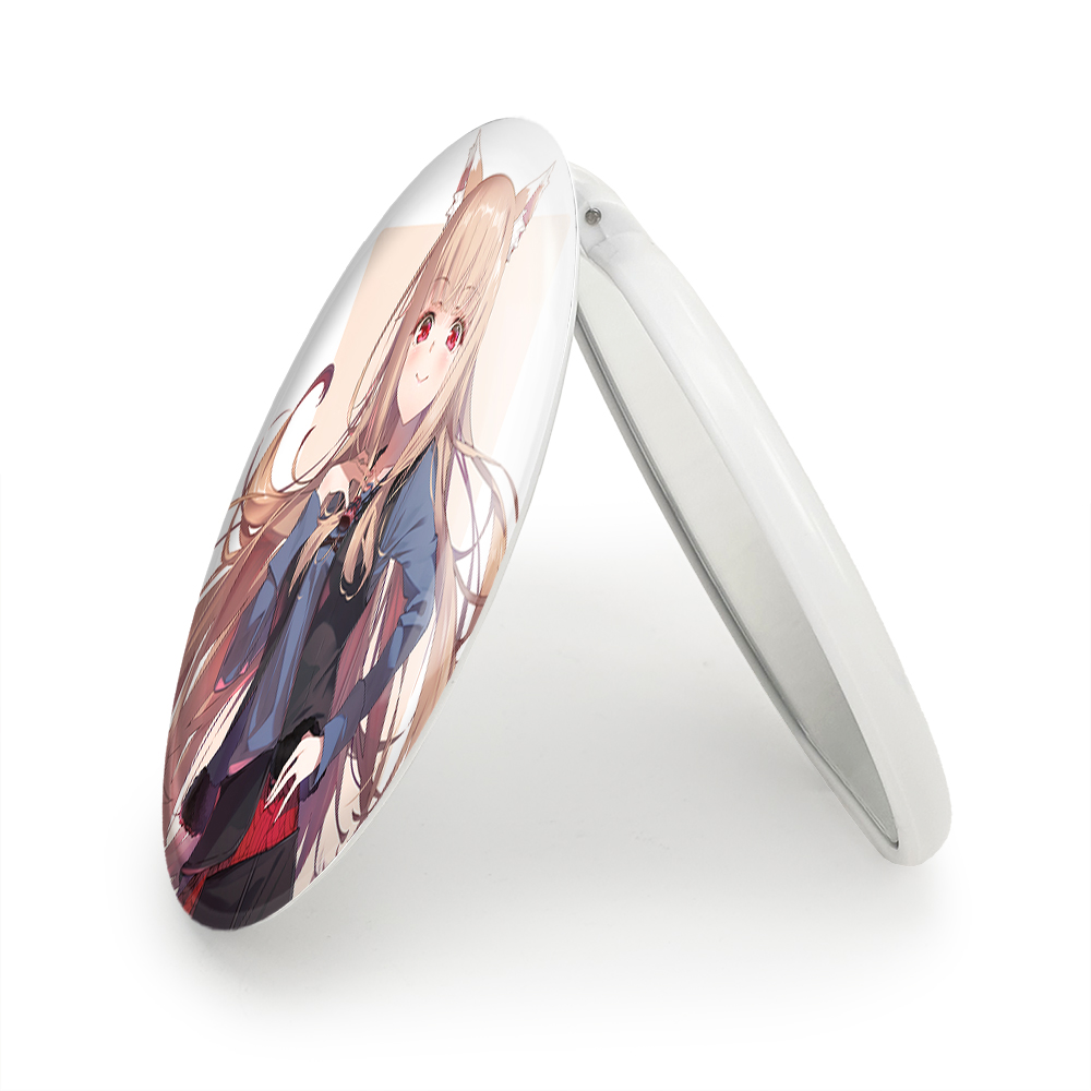 آینه های تاشو هولو انیمه ادویه و گرگ خندالو، از جنس پلاستیک فشرده ABS تولید شده و به رنگ سفید می باشد. یکی از آینه ها ابعاد واقعی را نشان داده و دیگری با قابلیت بزرگنمایی، جزئیات را بهتر نمایش می دهد.
