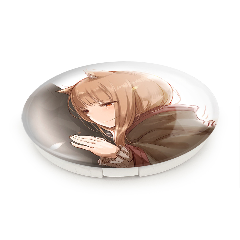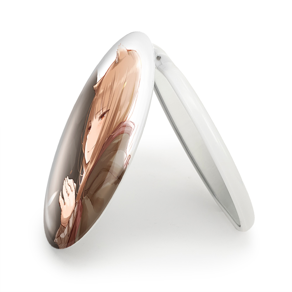 آینه های تاشو هولو انیمه ادویه و گرگ خندالو، از جنس پلاستیک فشرده ABS تولید شده و به رنگ سفید می باشد. یکی از آینه ها ابعاد واقعی را نشان داده و دیگری با قابلیت بزرگنمایی، جزئیات را بهتر نمایش می دهد.