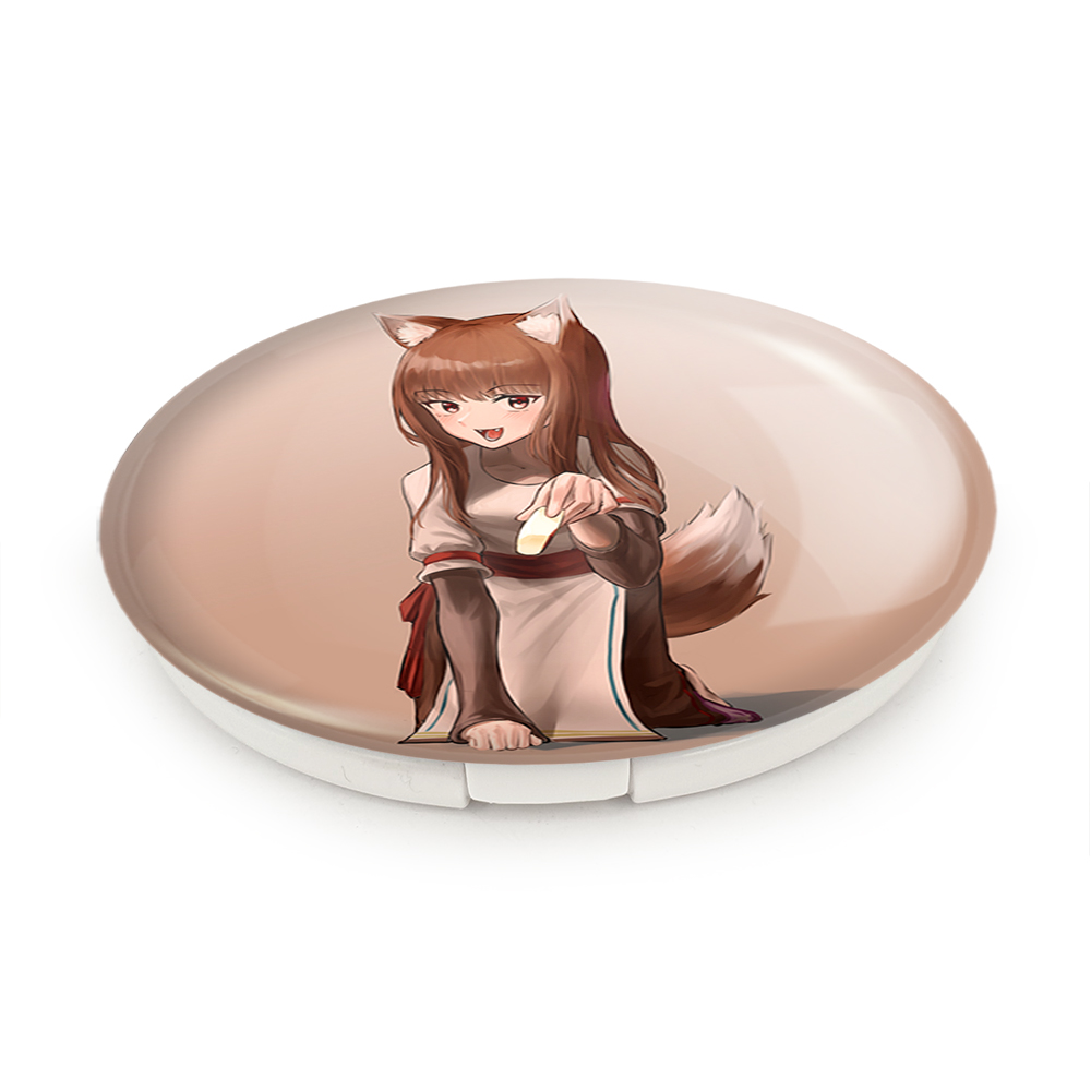 آینه های تاشو هولو انیمه ادویه و گرگ خندالو، از جنس پلاستیک فشرده ABS تولید شده و به رنگ سفید می باشد. یکی از آینه ها ابعاد واقعی را نشان داده و دیگری با قابلیت بزرگنمایی، جزئیات را بهتر نمایش می دهد.