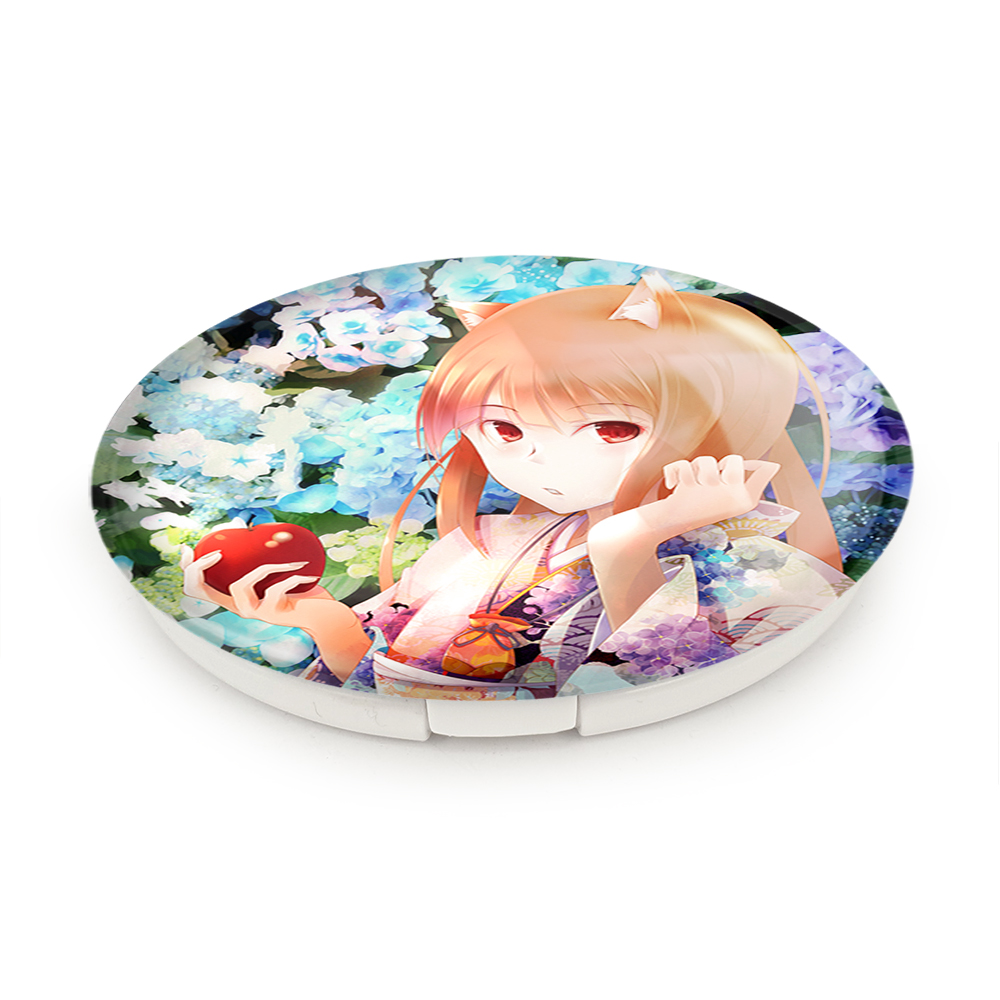 آینه های تاشو هولو انیمه ادویه و گرگ خندالو، از جنس پلاستیک فشرده ABS تولید شده و به رنگ سفید می باشد. یکی از آینه ها ابعاد واقعی را نشان داده و دیگری با قابلیت بزرگنمایی، جزئیات را بهتر نمایش می دهد.
