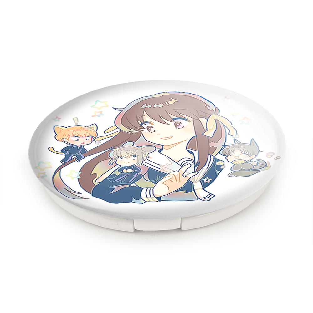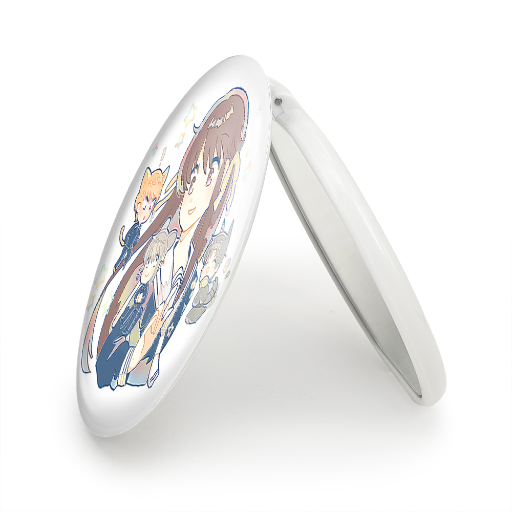 آینه های تاشو هوندا انیمه سبد میوه خندالو، از جنس پلاستیک فشرده ABS تولید شده و به رنگ سفید می باشد. یکی از آینه ها ابعاد واقعی را نشان داده و دیگری با قابلیت بزرگنمایی، جزئیات را بهتر نمایش می دهد. ابعاد هر یک از آینه ها، دایره ای به قطر 7.5 سانت می باشد که نه خیلی بزرگ و غیر قابل استفاده در کیف آرایشی ست و نه خیلی کوچک که تصویر خاصی در آن مشاهده نشود. آینه تاشو هوندا انیمه سبد میوه سایزی استاندارد و کارآمد دارد و در هر کیفی جا میگیرد. چاپ طرح بوسیله چاپگرهای دیجیتال شش رنگ با شفافیت و کیفیتی مثال زدنی بر روی یک وجه از بدنه ی آینه انجام گرفته و با روکش لمینت حرارتی پوشیده شده که در مقابل آسیب و خط و خش مقاوم بوده و کیفیت بالایی دارد. درب آینه بوسیله قفل بدنه ی آن، باز نمی ماند و کاملا بسته می شود و مناسب قرار گیری در کیف لوازم آرایش و کیف های کوچک دستی نیز هست. آینه های تاشو هوندا انیمه سبد میوه خندالو با تنوع طرحی بسیار بالا، سلیقه هر نوع مخاطبی را تامین میکند.