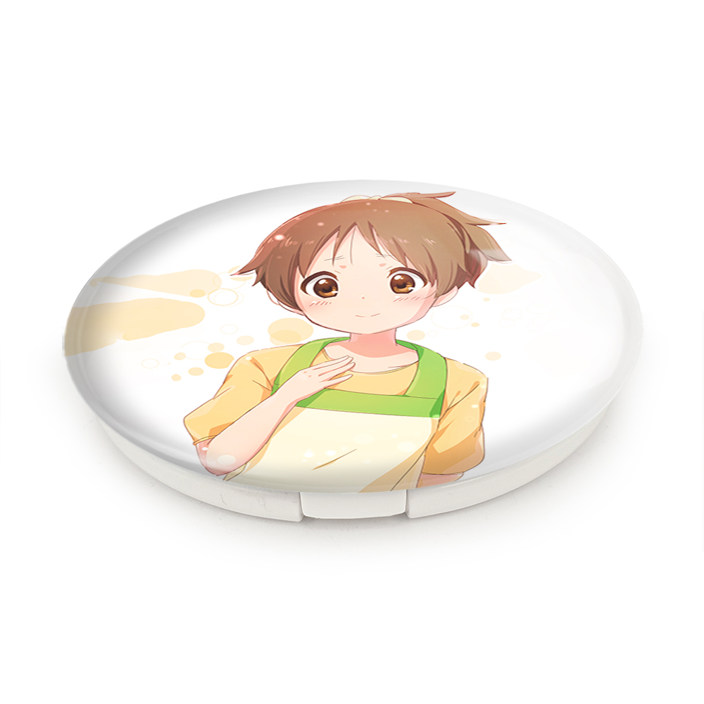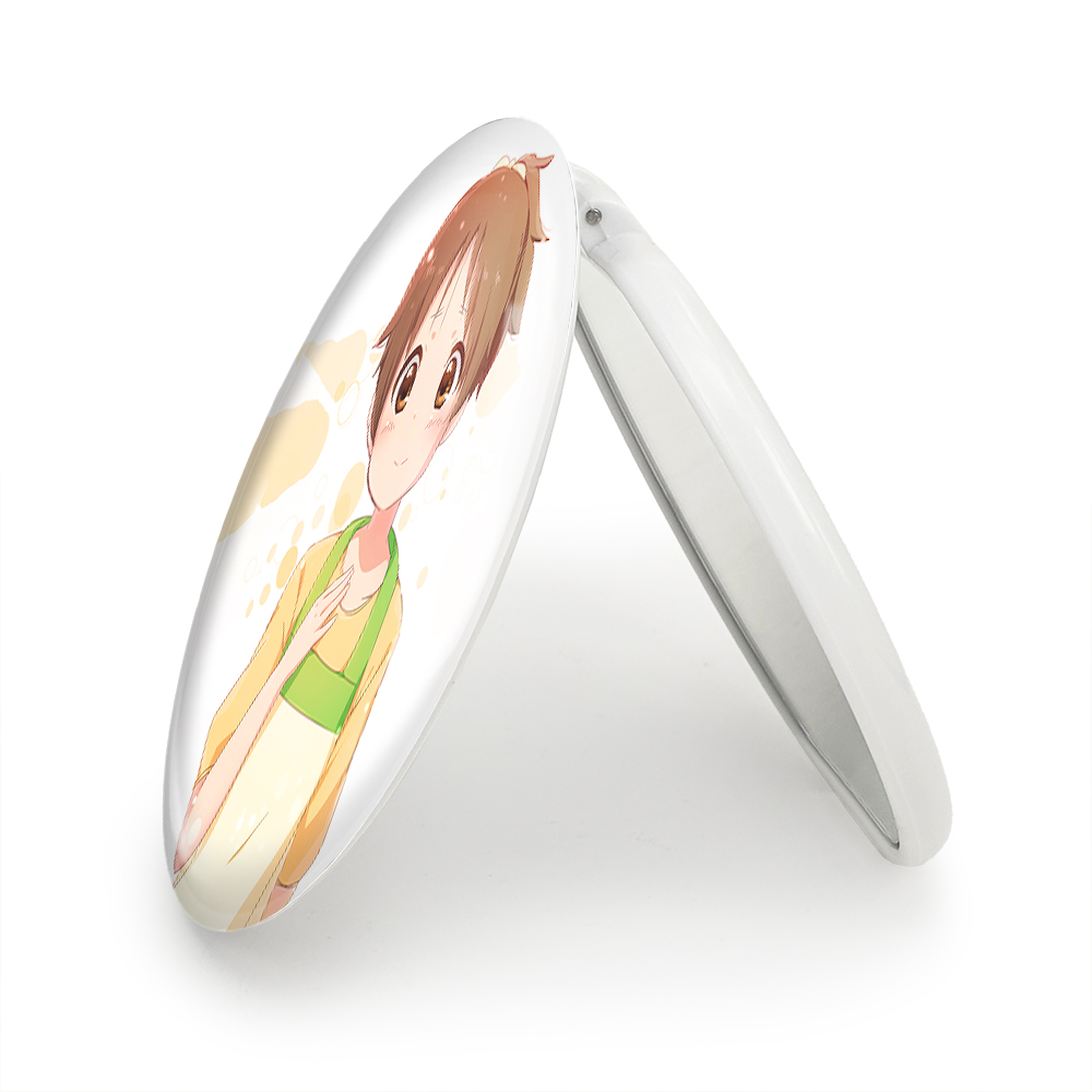 آینه های تاشو هیراساوا انیمه كي اون خندالو، از جنس پلاستیک فشرده ABS تولید شده و به رنگ سفید می باشد. یکی از آینه ها ابعاد واقعی را نشان داده و دیگری با قابلیت بزرگنمایی، جزئیات را بهتر نمایش می دهد. ابعاد هر یک از آینه ها، دایره ای به قطر 7.5 سانت می باشد که نه خیلی بزرگ و غیر قابل استفاده در کیف آرایشی ست و نه خیلی کوچک که تصویر خاصی در آن مشاهده نشود. آینه تاشو هیراساوا انیمه كي اون سایزی استاندارد و کارآمد دارد و در هر کیفی جا میگیرد. چاپ طرح بوسیله چاپگرهای دیجیتال شش رنگ با شفافیت و کیفیتی مثال زدنی بر روی یک وجه از بدنه ی آینه انجام گرفته و با روکش لمینت حرارتی پوشیده شده که در مقابل آسیب و خط و خش مقاوم بوده و کیفیت بالایی دارد. درب آینه بوسیله قفل بدنه ی آن، باز نمی ماند و کاملا بسته می شود و مناسب قرار گیری در کیف لوازم آرایش و کیف های کوچک دستی نیز هست. آینه های تاشو هیراساوا انیمه كي اون خندالو با تنوع طرحی بسیار بالا، سلیقه هر نوع مخاطبی را تامین میکند.