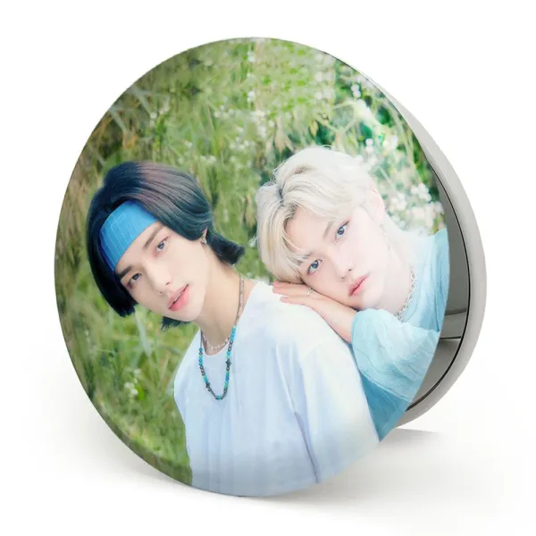 آینه های تاشو هیونجین و فلیکس گروه استری کیدز Stary Kids خندالو، از جنس پلاستیک فشرده ABS تولید شده و به رنگ سفید می باشد. یکی از آینه ها ابعاد واقعی را نشان داده و دیگری با قابلیت بزرگنمایی، جزئیات را بهتر نمایش می دهد. ابعاد هر یک از آینه ها، دایره ای به قطر 7.5 سانت می باشد که نه خیلی بزرگ و غیر قابل استفاده در کیف آرایشی ست و نه خیلی کوچک که تصویر خاصی در آن مشاهده نشود. آینه تاشو هیونجین و فلیکس گروه استری کیدز Stary Kids سایزی استاندارد و کارآمد دارد و در هر کیفی جا میگیرد. چاپ طرح بوسیله چاپگرهای دیجیتال شش رنگ با شفافیت و کیفیتی مثال زدنی بر روی یک وجه از بدنه ی آینه انجام گرفته و با روکش لمینت حرارتی پوشیده شده که در مقابل آسیب و خط و خش مقاوم بوده و کیفیت بالایی دارد. درب آینه بوسیله قفل بدنه ی آن، باز نمی ماند و کاملا بسته می شود و مناسب قرار گیری در کیف لوازم آرایش و کیف های کوچک دستی نیز هست. آینه های تاشو هیونجین و فلیکس گروه استری کیدز Stary Kids خندالو با تنوع طرحی بسیار بالا، سلیقه هر نوع مخاطبی را تامین میکند.