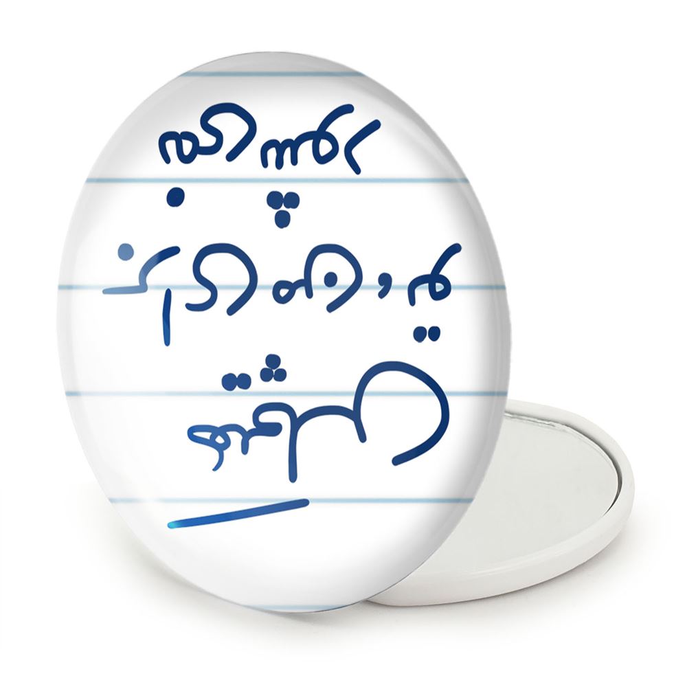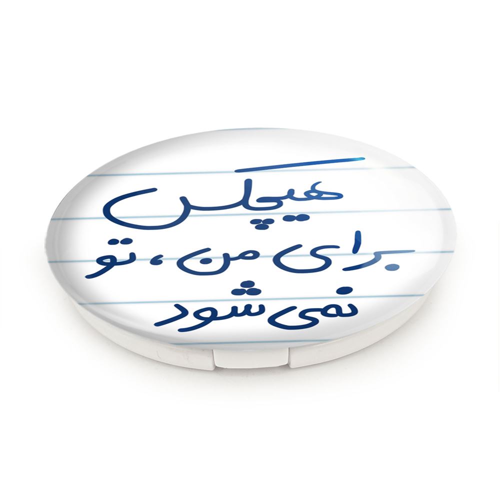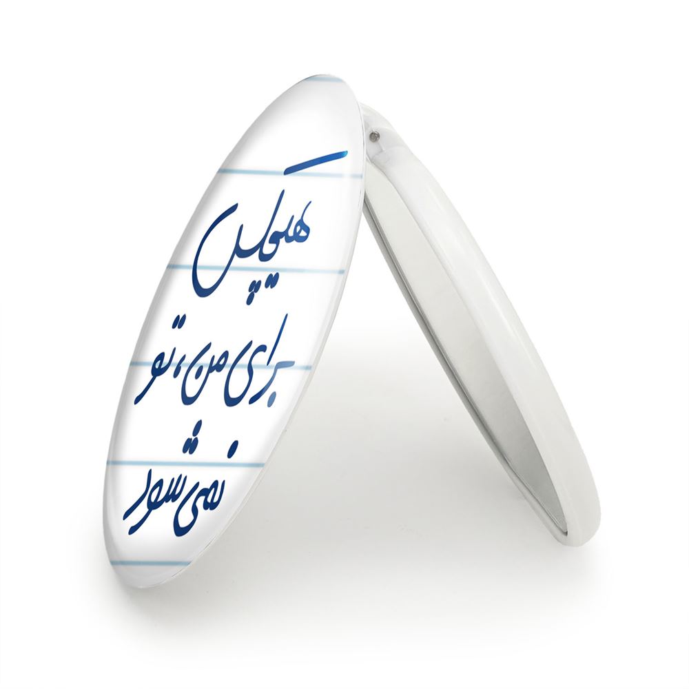 آینه های تاشو هیچکس برای من تو نمی شود خندالو، از جنس پلاستیک فشرده ABS تولید شده و به رنگ سفید می باشد. یکی از آینه ها ابعاد واقعی را نشان داده و دیگری با قابلیت بزرگنمایی، جزئیات را بهتر نمایش می دهد. ابعاد هر یک از آینه ها، دایره ای به قطر 7.5 سانت می باشد که نه خیلی بزرگ و غیر قابل استفاده در کیف آرایشی ست و نه خیلی کوچک که تصویر خاصی در آن مشاهده نشود. آینه تاشو هیچکس برای من تو نمی شود سایزی استاندارد و کارآمد دارد و در هر کیفی جا میگیرد. چاپ طرح بوسیله چاپگرهای دیجیتال شش رنگ با شفافیت و کیفیتی مثال زدنی بر روی یک وجه از بدنه ی آینه انجام گرفته و با روکش لمینت حرارتی پوشیده شده که در مقابل آسیب و خط و خش مقاوم بوده و کیفیت بالایی دارد. درب آینه بوسیله قفل بدنه ی آن، باز نمی ماند و کاملا بسته می شود و مناسب قرار گیری در کیف لوازم آرایش و کیف های کوچک دستی نیز هست. آینه های تاشو هیچکس برای من تو نمی شود خندالو با تنوع طرحی بسیار بالا، سلیقه هر نوع مخاطبی را تامین میکند.