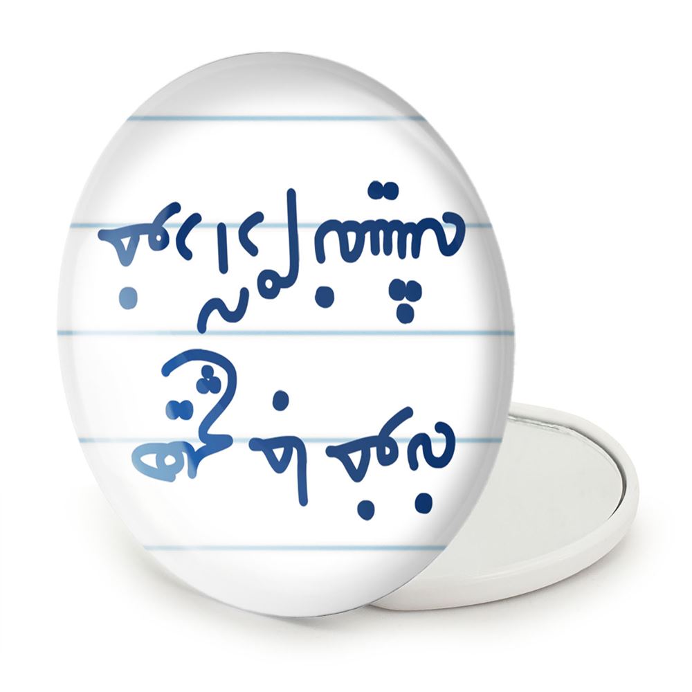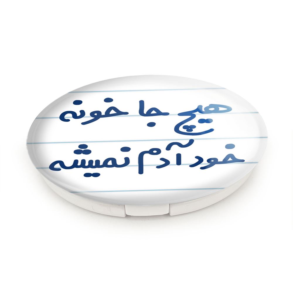 آینه های تاشو هیچ جا خونه خود آدم نمیشه خندالو، از جنس پلاستیک فشرده ABS تولید شده و به رنگ سفید می باشد. یکی از آینه ها ابعاد واقعی را نشان داده و دیگری با قابلیت بزرگنمایی، جزئیات را بهتر نمایش می دهد. ابعاد هر یک از آینه ها، دایره ای به قطر 7.5 سانت می باشد که نه خیلی بزرگ و غیر قابل استفاده در کیف آرایشی ست و نه خیلی کوچک که تصویر خاصی در آن مشاهده نشود. آینه تاشو هیچ جا خونه خود آدم نمیشه سایزی استاندارد و کارآمد دارد و در هر کیفی جا میگیرد. چاپ طرح بوسیله چاپگرهای دیجیتال شش رنگ با شفافیت و کیفیتی مثال زدنی بر روی یک وجه از بدنه ی آینه انجام گرفته و با روکش لمینت حرارتی پوشیده شده که در مقابل آسیب و خط و خش مقاوم بوده و کیفیت بالایی دارد. درب آینه بوسیله قفل بدنه ی آن، باز نمی ماند و کاملا بسته می شود و مناسب قرار گیری در کیف لوازم آرایش و کیف های کوچک دستی نیز هست. آینه های تاشو هیچ جا خونه خود آدم نمیشه خندالو با تنوع طرحی بسیار بالا، سلیقه هر نوع مخاطبی را تامین میکند.