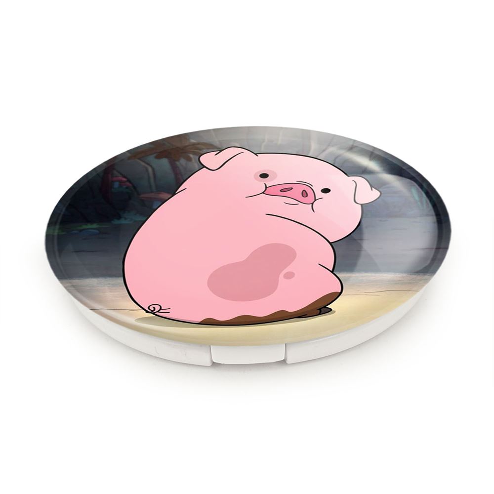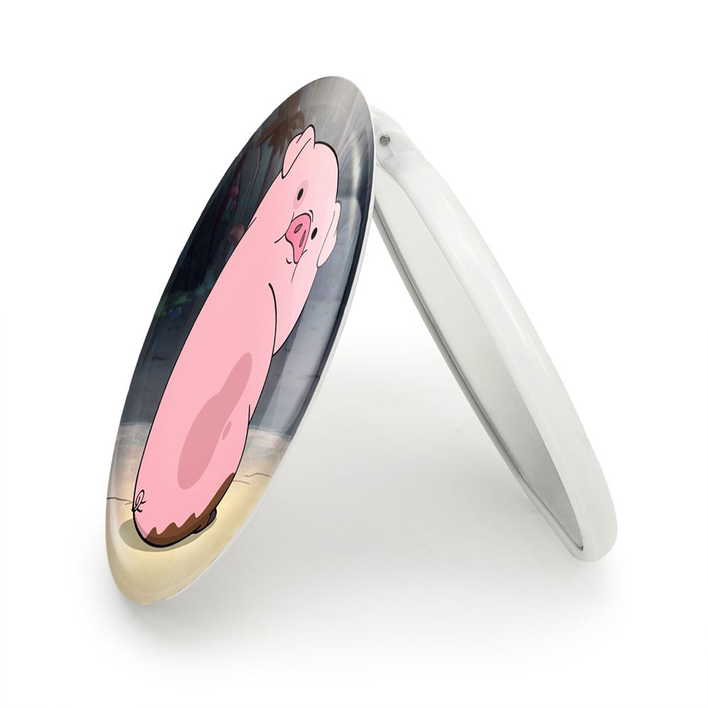 آینه های تاشو وادلز انیمیشن آبشار جاذبه Gravity Falls خندالو، از جنس پلاستیک فشرده ABS تولید شده و به رنگ سفید می باشد. یکی از آینه ها ابعاد واقعی را نشان داده و دیگری با قابلیت بزرگنمایی، جزئیات را بهتر نمایش می دهد. ابعاد هر یک از آینه ها، دایره ای به قطر 7.5 سانت می باشد که نه خیلی بزرگ و غیر قابل استفاده در کیف آرایشی ست و نه خیلی کوچک که تصویر خاصی در آن مشاهده نشود. آینه تاشو وادلز انیمیشن آبشار جاذبه Gravity Falls سایزی استاندارد و کارآمد دارد و در هر کیفی جا میگیرد. چاپ طرح بوسیله چاپگرهای دیجیتال شش رنگ با شفافیت و کیفیتی مثال زدنی بر روی یک وجه از بدنه ی آینه انجام گرفته و با روکش لمینت حرارتی پوشیده شده که در مقابل آسیب و خط و خش مقاوم بوده و کیفیت بالایی دارد. درب آینه بوسیله قفل بدنه ی آن، باز نمی ماند و کاملا بسته می شود و مناسب قرار گیری در کیف لوازم آرایش و کیف های کوچک دستی نیز هست. آینه های تاشو وادلز انیمیشن آبشار جاذبه Gravity Falls خندالو با تنوع طرحی بسیار بالا، سلیقه هر نوع مخاطبی را تامین میکند.