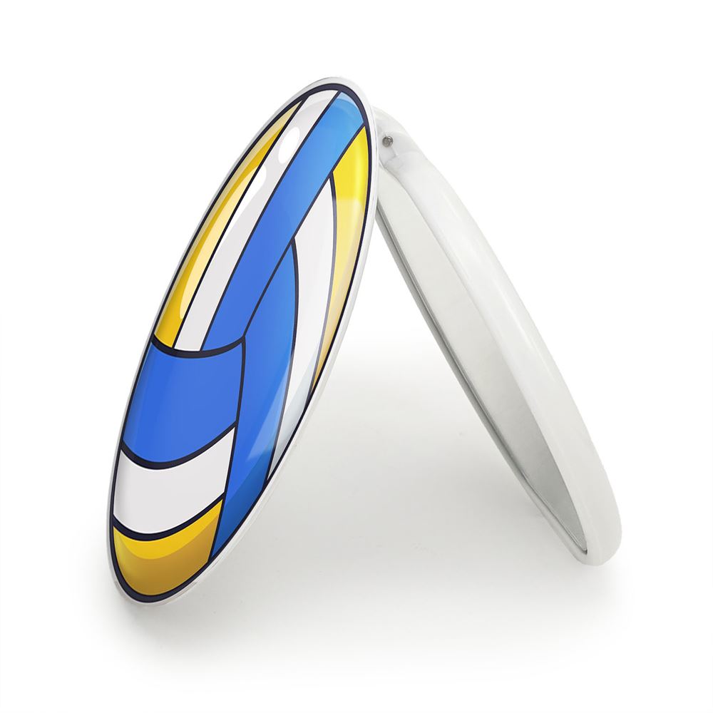 آینه های تاشو والیبال Volleyball خندالو، از جنس پلاستیک فشرده ABS تولید شده و به رنگ سفید می باشد. یکی از آینه ها ابعاد واقعی را نشان داده و دیگری با قابلیت بزرگنمایی، جزئیات را بهتر نمایش می دهد. ابعاد هر یک از آینه ها، دایره ای به قطر 7.5 سانت می باشد که نه خیلی بزرگ و غیر قابل استفاده در کیف آرایشی ست و نه خیلی کوچک که تصویر خاصی در آن مشاهده نشود. آینه تاشو والیبال Volleyball سایزی استاندارد و کارآمد دارد و در هر کیفی جا میگیرد. چاپ طرح بوسیله چاپگرهای دیجیتال شش رنگ با شفافیت و کیفیتی مثال زدنی بر روی یک وجه از بدنه ی آینه انجام گرفته و با روکش لمینت حرارتی پوشیده شده که در مقابل آسیب و خط و خش مقاوم بوده و کیفیت بالایی دارد. درب آینه بوسیله قفل بدنه ی آن، باز نمی ماند و کاملا بسته می شود و مناسب قرار گیری در کیف لوازم آرایش و کیف های کوچک دستی نیز هست. آینه های تاشو والیبال Volleyball خندالو با تنوع طرحی بسیار بالا، سلیقه هر نوع مخاطبی را تامین میکند.