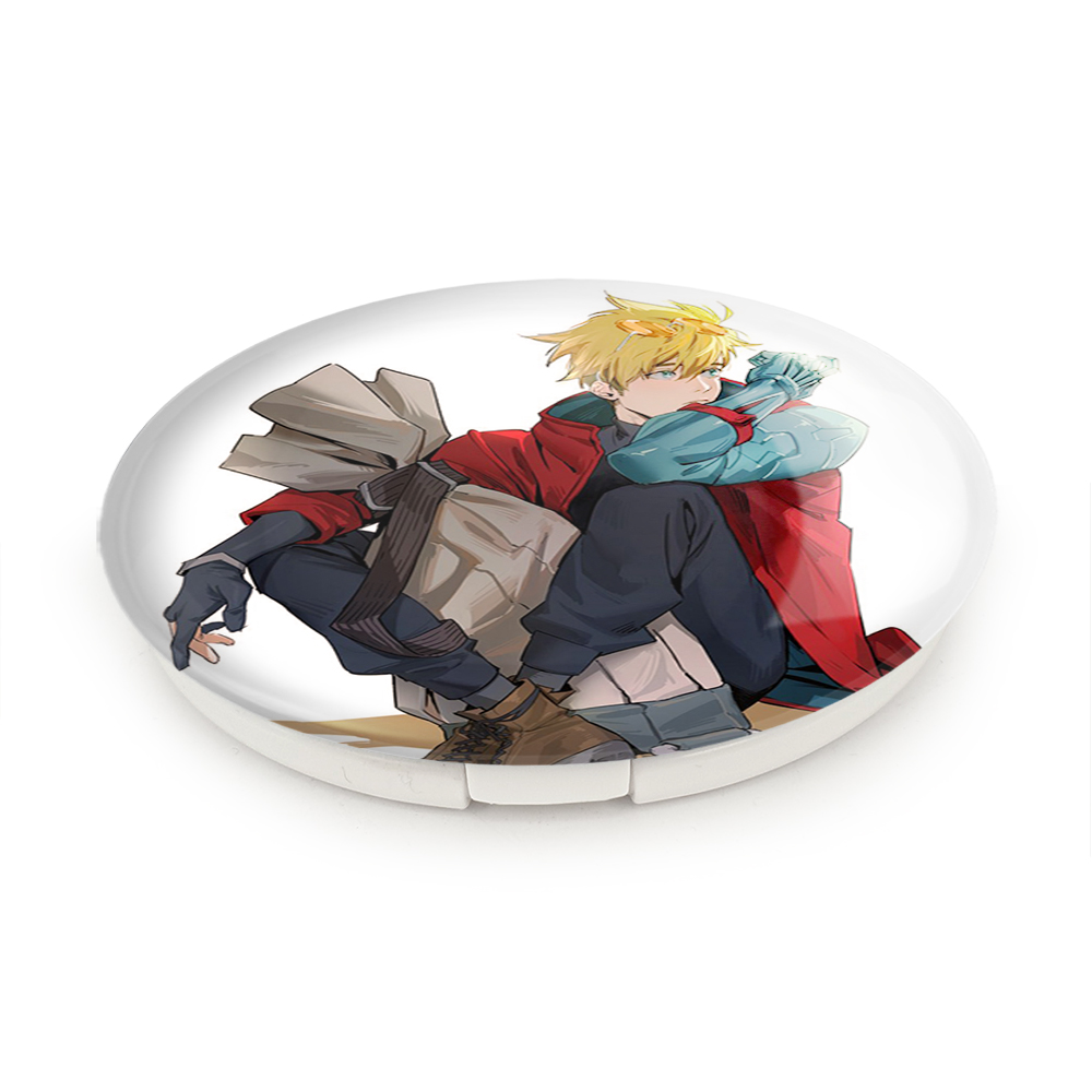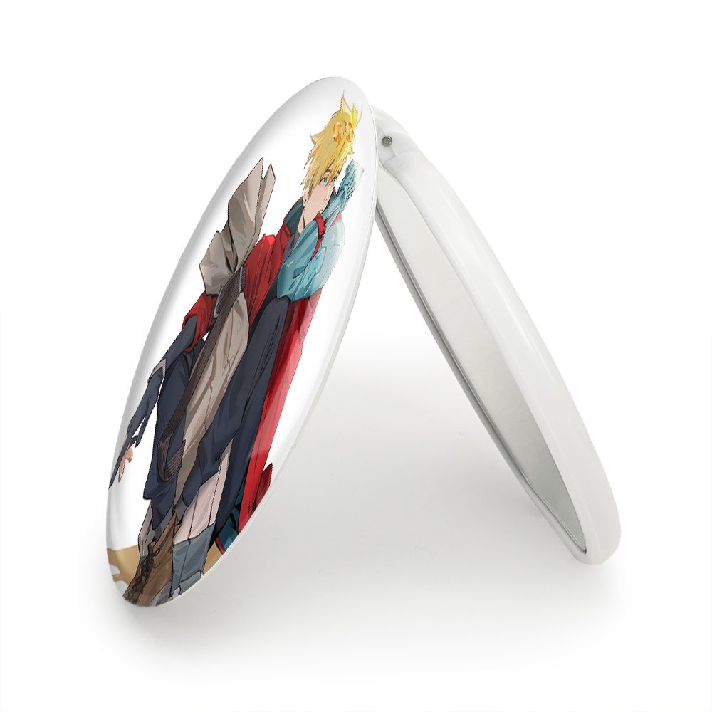 آینه های تاشو وش انیمه تریگان (Trigun) خندالو، از جنس پلاستیک فشرده ABS تولید شده و به رنگ سفید می باشد. یکی از آینه ها ابعاد واقعی را نشان داده و دیگری با قابلیت بزرگنمایی، جزئیات را بهتر نمایش می دهد.