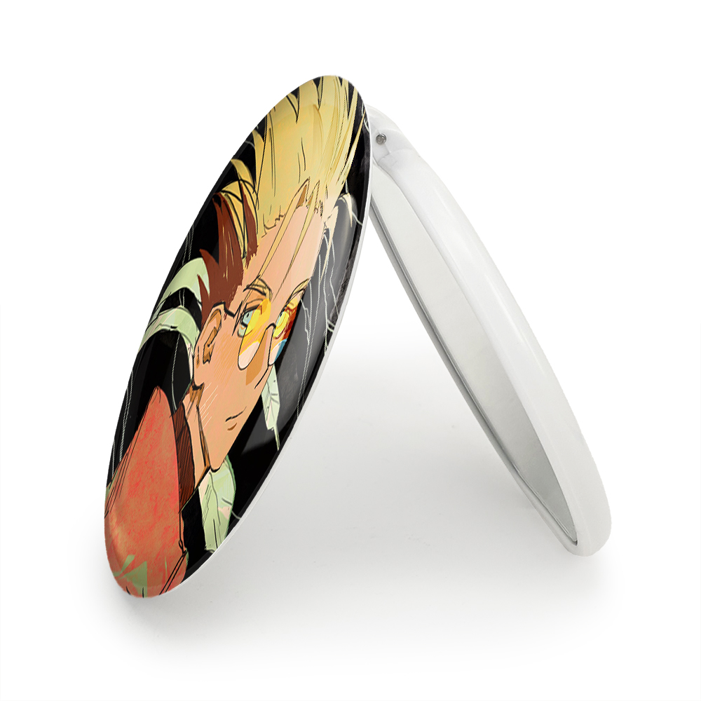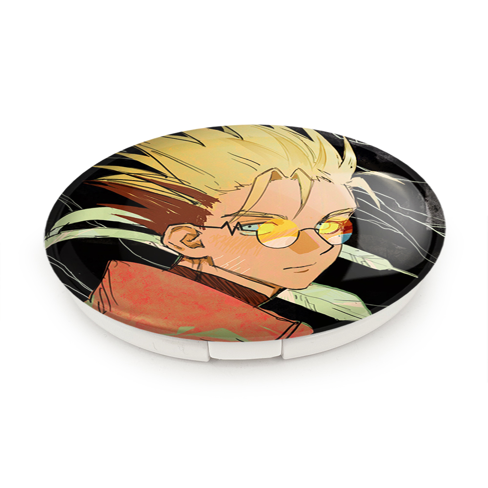 آینه های تاشو وش انیمه تریگان (Trigun) خندالو، از جنس پلاستیک فشرده ABS تولید شده و به رنگ سفید می باشد. یکی از آینه ها ابعاد واقعی را نشان داده و دیگری با قابلیت بزرگنمایی، جزئیات را بهتر نمایش می دهد.