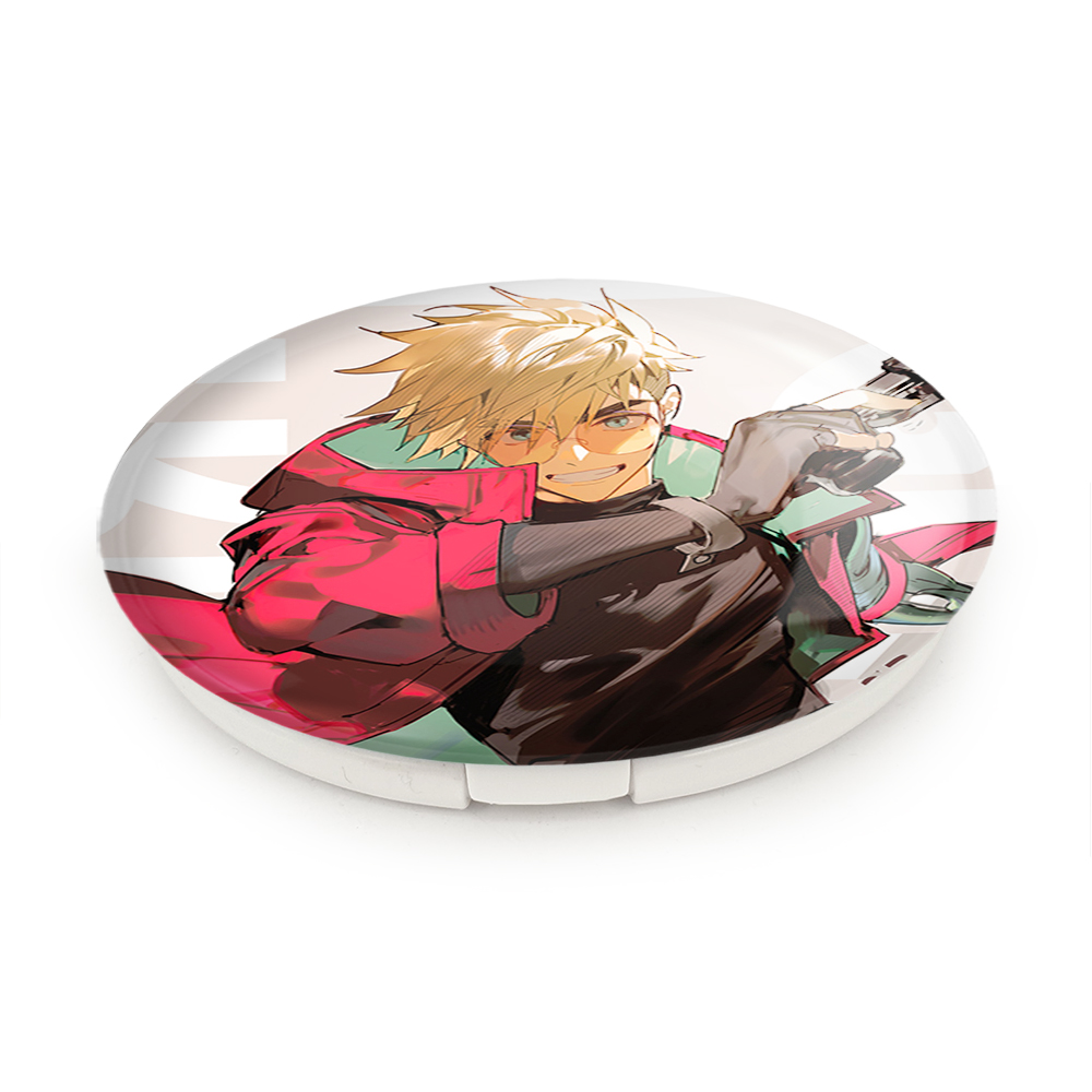 آینه های تاشو وش انیمه تریگان (Trigun) خندالو، از جنس پلاستیک فشرده ABS تولید شده و به رنگ سفید می باشد. یکی از آینه ها ابعاد واقعی را نشان داده و دیگری با قابلیت بزرگنمایی، جزئیات را بهتر نمایش می دهد.