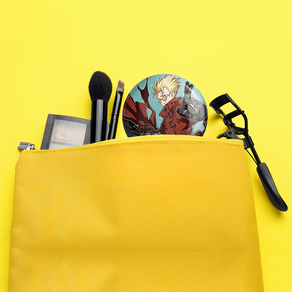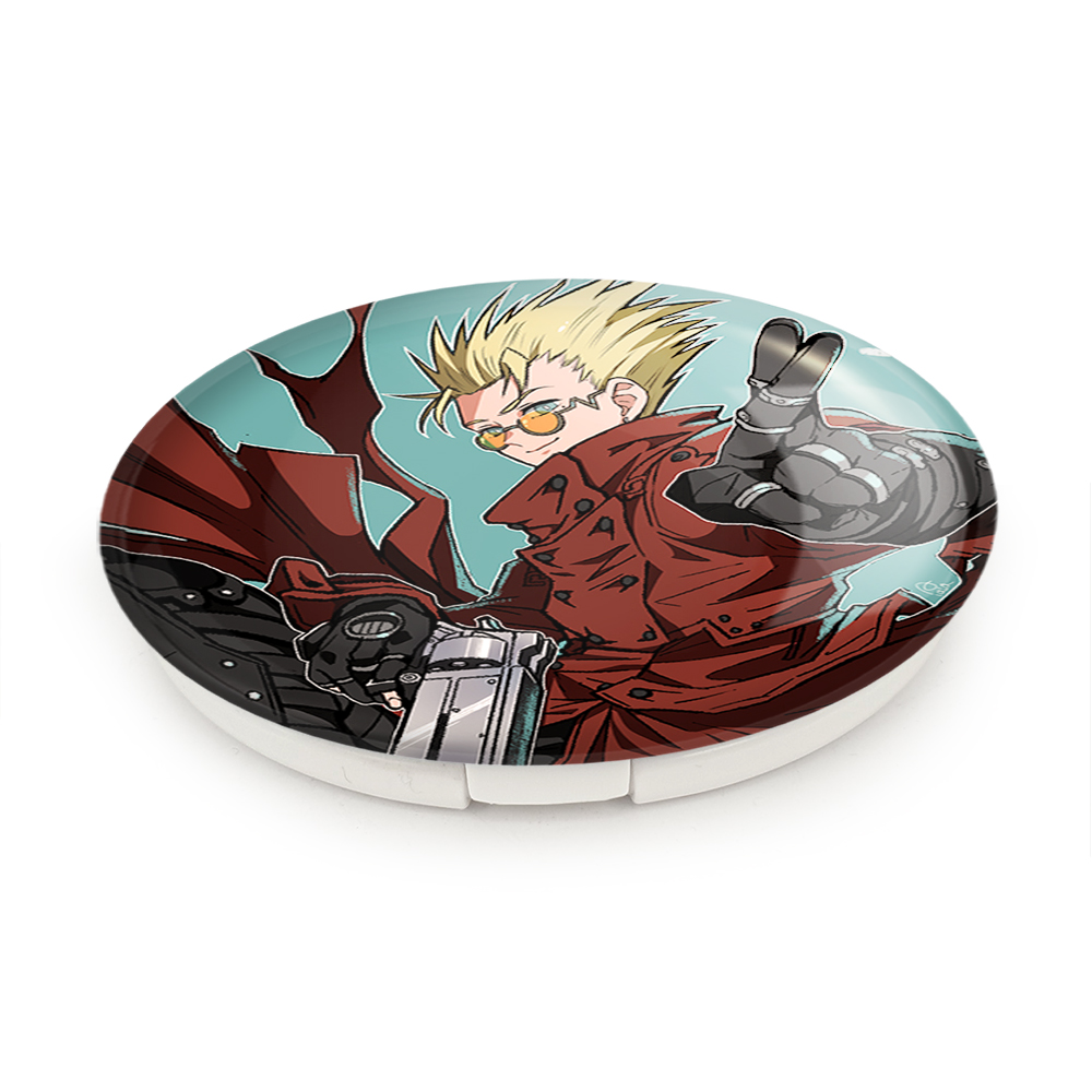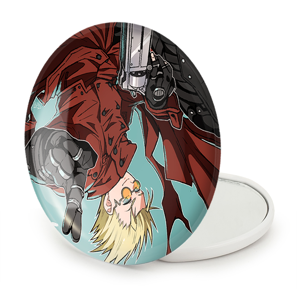 آینه های تاشو وش انیمه تریگان (Trigun) خندالو، از جنس پلاستیک فشرده ABS تولید شده و به رنگ سفید می باشد. یکی از آینه ها ابعاد واقعی را نشان داده و دیگری با قابلیت بزرگنمایی، جزئیات را بهتر نمایش می دهد.