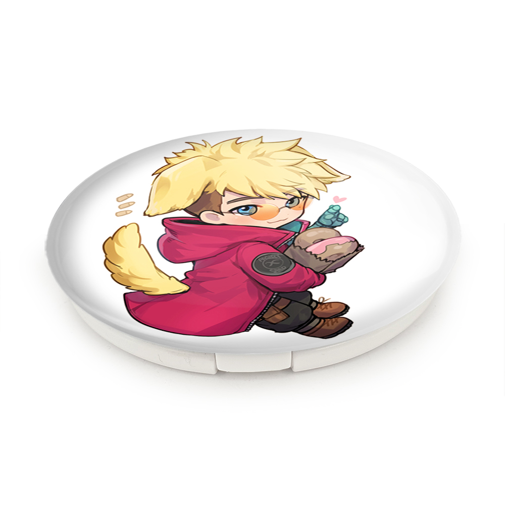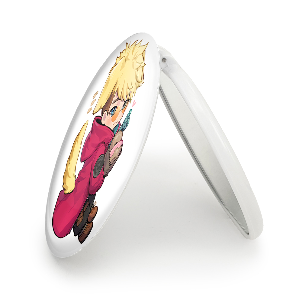 آینه های تاشو وش و میلینز انیمه تریگان خندالو، از جنس پلاستیک فشرده ABS تولید شده و به رنگ سفید می باشد. یکی از آینه ها ابعاد واقعی را نشان داده و دیگری با قابلیت بزرگنمایی، جزئیات را بهتر نمایش می دهد. ابعاد هر یک از آینه ها، دایره ای به قطر 7.5 سانت می باشد که نه خیلی بزرگ و غیر قابل استفاده در کیف آرایشی ست و نه خیلی کوچک که تصویر خاصی در آن مشاهده نشود. آینه تاشو وش و میلینز انیمه تریگان سایزی استاندارد و کارآمد دارد و در هر کیفی جا میگیرد. چاپ طرح بوسیله چاپگرهای دیجیتال شش رنگ با شفافیت و کیفیتی مثال زدنی بر روی یک وجه از بدنه ی آینه انجام گرفته و با روکش لمینت حرارتی پوشیده شده که در مقابل آسیب و خط و خش مقاوم بوده و کیفیت بالایی دارد. درب آینه بوسیله قفل بدنه ی آن، باز نمی ماند و کاملا بسته می شود و مناسب قرار گیری در کیف لوازم آرایش و کیف های کوچک دستی نیز هست. آینه های تاشو وش و میلینز انیمه تریگان خندالو با تنوع طرحی بسیار بالا، سلیقه هر نوع مخاطبی را تامین میکند.