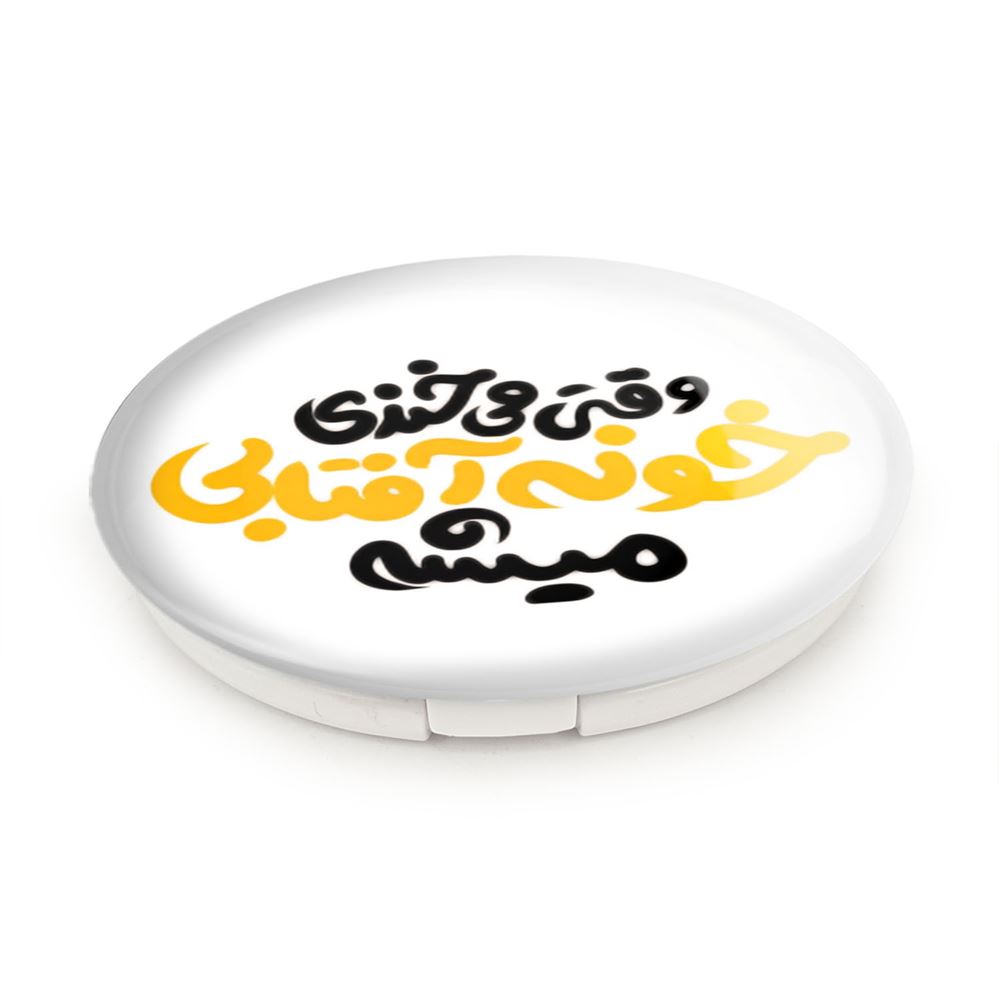 آینه های تاشو وقتی میخندی خونه آفتابی میشه خندالو، از جنس پلاستیک فشرده ABS تولید شده و به رنگ سفید می باشد. یکی از آینه ها ابعاد واقعی را نشان داده و دیگری با قابلیت بزرگنمایی، جزئیات را بهتر نمایش می دهد. ابعاد هر یک از آینه ها، دایره ای به قطر 7.5 سانت می باشد که نه خیلی بزرگ و غیر قابل استفاده در کیف آرایشی ست و نه خیلی کوچک که تصویر خاصی در آن مشاهده نشود. آینه تاشو وقتی میخندی خونه آفتابی میشه سایزی استاندارد و کارآمد دارد و در هر کیفی جا میگیرد. چاپ طرح بوسیله چاپگرهای دیجیتال شش رنگ با شفافیت و کیفیتی مثال زدنی بر روی یک وجه از بدنه ی آینه انجام گرفته و با روکش لمینت حرارتی پوشیده شده که در مقابل آسیب و خط و خش مقاوم بوده و کیفیت بالایی دارد. درب آینه بوسیله قفل بدنه ی آن، باز نمی ماند و کاملا بسته می شود و مناسب قرار گیری در کیف لوازم آرایش و کیف های کوچک دستی نیز هست. آینه های تاشو وقتی میخندی خونه آفتابی میشه خندالو با تنوع طرحی بسیار بالا، سلیقه هر نوع مخاطبی را تامین میکند.