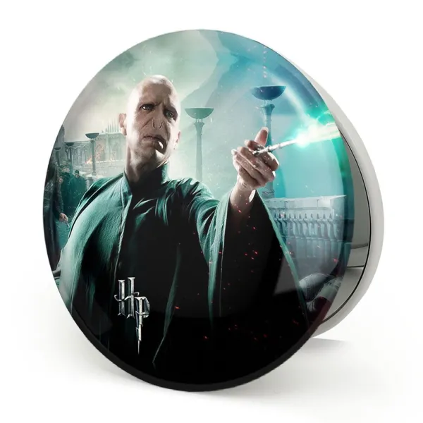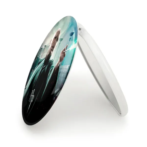 آینه های تاشو ولدمورت هری پاتر Harry Potter خندالو، از جنس پلاستیک فشرده ABS تولید شده و به رنگ سفید می باشد. یکی از آینه ها ابعاد واقعی را نشان داده و دیگری با قابلیت بزرگنمایی، جزئیات را بهتر نمایش می دهد. ابعاد هر یک از آینه ها، دایره ای به قطر 7.5 سانت می باشد که نه خیلی بزرگ و غیر قابل استفاده در کیف آرایشی ست و نه خیلی کوچک که تصویر خاصی در آن مشاهده نشود. آینه تاشو ولدمورت هری پاتر Harry Potter سایزی استاندارد و کارآمد دارد و در هر کیفی جا میگیرد. چاپ طرح بوسیله چاپگرهای دیجیتال شش رنگ با شفافیت و کیفیتی مثال زدنی بر روی یک وجه از بدنه ی آینه انجام گرفته و با روکش لمینت حرارتی پوشیده شده که در مقابل آسیب و خط و خش مقاوم بوده و کیفیت بالایی دارد. درب آینه بوسیله قفل بدنه ی آن، باز نمی ماند و کاملا بسته می شود و مناسب قرار گیری در کیف لوازم آرایش و کیف های کوچک دستی نیز هست. آینه های تاشو ولدمورت هری پاتر Harry Potter خندالو با تنوع طرحی بسیار بالا، سلیقه هر نوع مخاطبی را تامین میکند.