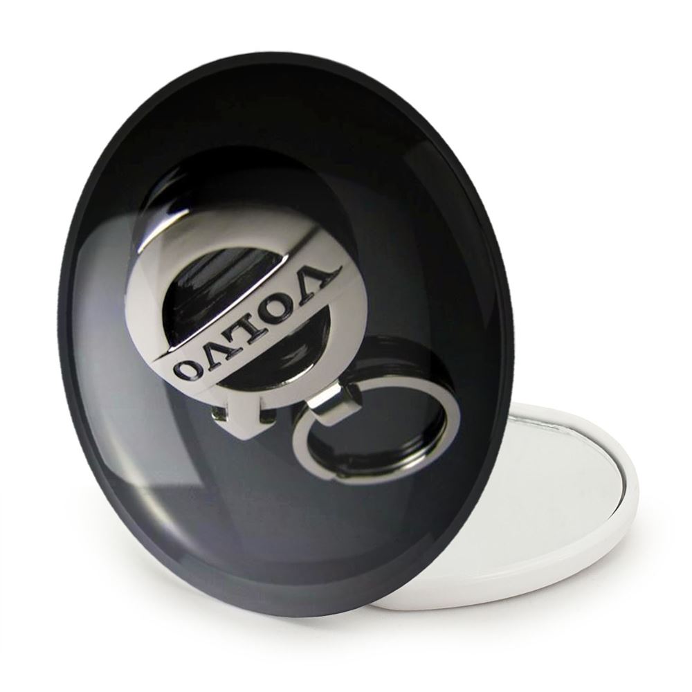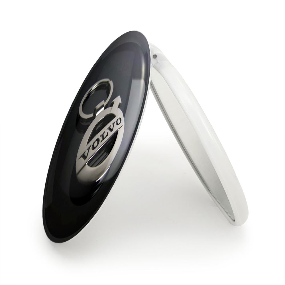 آینه های تاشو ولوو volvo خندالو، از جنس پلاستیک فشرده ABS تولید شده و به رنگ سفید می باشد. یکی از آینه ها ابعاد واقعی را نشان داده و دیگری با قابلیت بزرگنمایی، جزئیات را بهتر نمایش می دهد. ابعاد هر یک از آینه ها، دایره ای به قطر 7.5 سانت می باشد که نه خیلی بزرگ و غیر قابل استفاده در کیف آرایشی ست و نه خیلی کوچک که تصویر خاصی در آن مشاهده نشود. آینه تاشو ولوو volvo سایزی استاندارد و کارآمد دارد و در هر کیفی جا میگیرد. چاپ طرح بوسیله چاپگرهای دیجیتال شش رنگ با شفافیت و کیفیتی مثال زدنی بر روی یک وجه از بدنه ی آینه انجام گرفته و با روکش لمینت حرارتی پوشیده شده که در مقابل آسیب و خط و خش مقاوم بوده و کیفیت بالایی دارد. درب آینه بوسیله قفل بدنه ی آن، باز نمی ماند و کاملا بسته می شود و مناسب قرار گیری در کیف لوازم آرایش و کیف های کوچک دستی نیز هست. آینه های تاشو ولوو volvo خندالو با تنوع طرحی بسیار بالا، سلیقه هر نوع مخاطبی را تامین میکند.