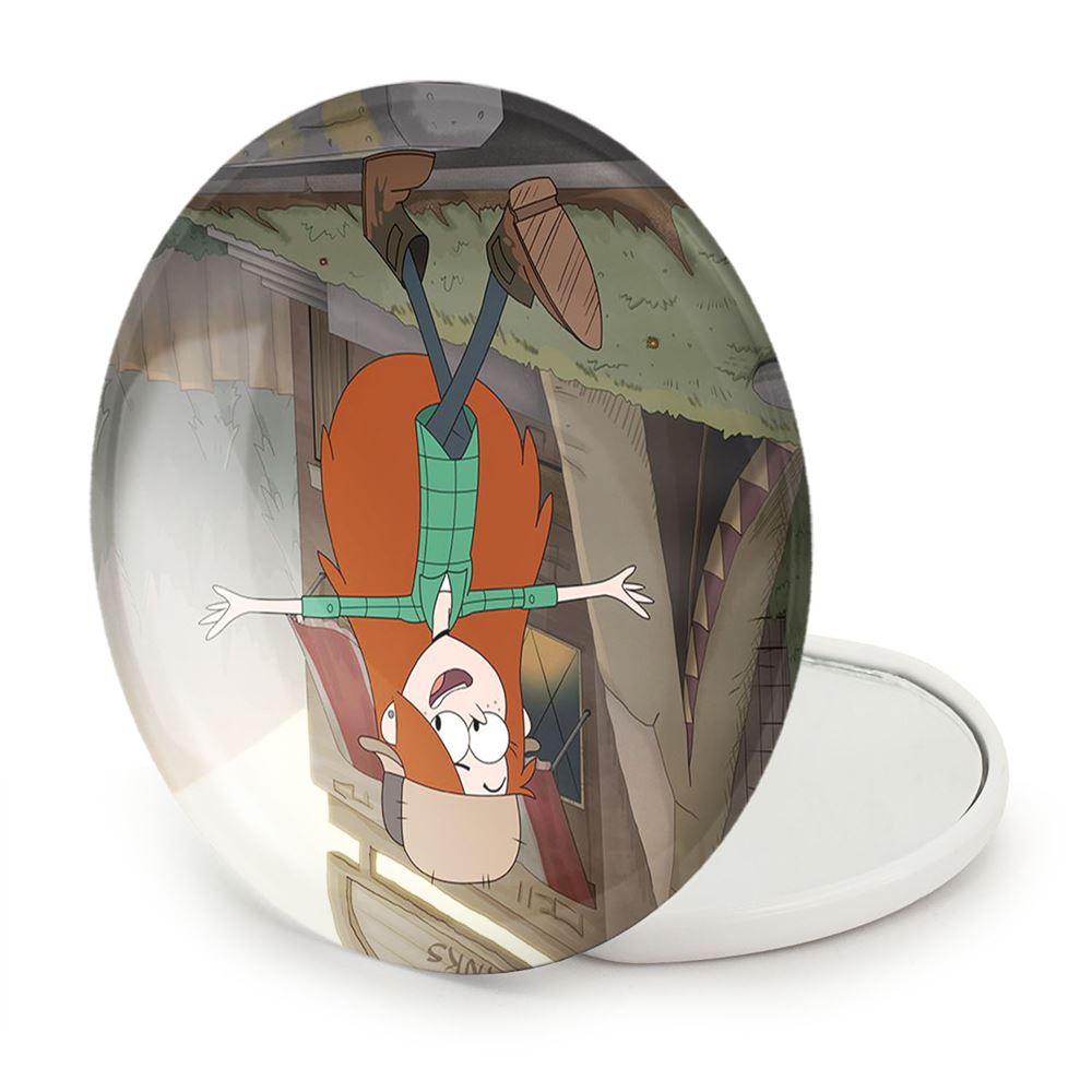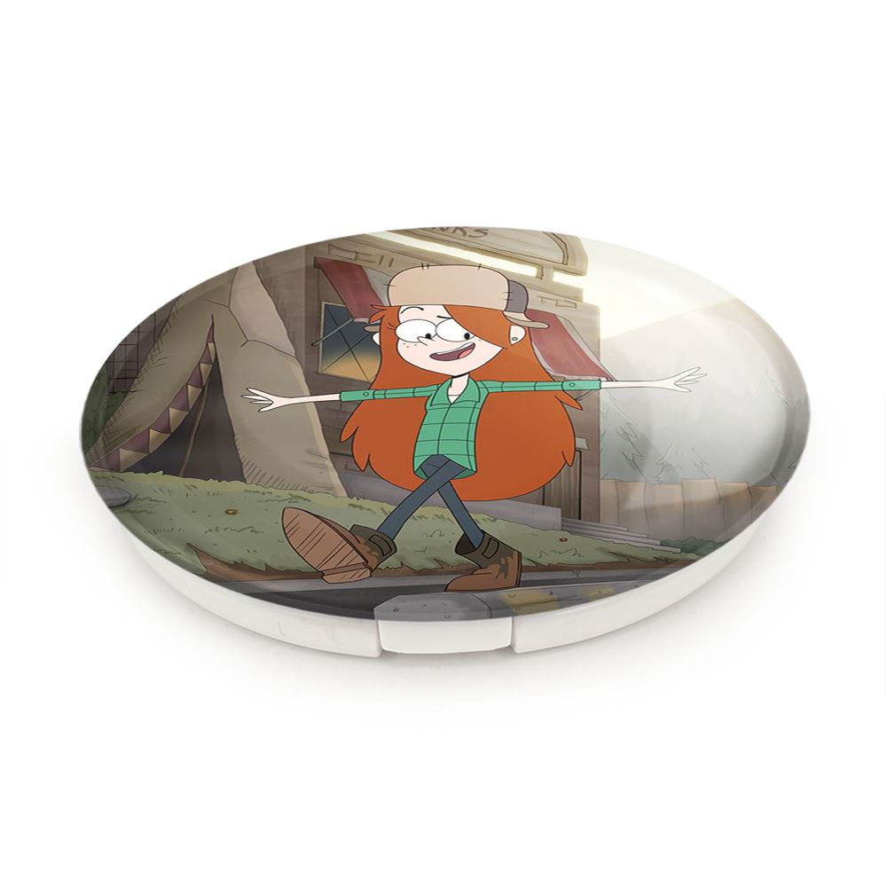 آینه های تاشو وندی انیمیشن آبشار جاذبه Gravity Falls خندالو، از جنس پلاستیک فشرده ABS تولید شده و به رنگ سفید می باشد. یکی از آینه ها ابعاد واقعی را نشان داده و دیگری با قابلیت بزرگنمایی، جزئیات را بهتر نمایش می دهد. ابعاد هر یک از آینه ها، دایره ای به قطر 7.5 سانت می باشد که نه خیلی بزرگ و غیر قابل استفاده در کیف آرایشی ست و نه خیلی کوچک که تصویر خاصی در آن مشاهده نشود. آینه تاشو وندی انیمیشن آبشار جاذبه Gravity Falls سایزی استاندارد و کارآمد دارد و در هر کیفی جا میگیرد. چاپ طرح بوسیله چاپگرهای دیجیتال شش رنگ با شفافیت و کیفیتی مثال زدنی بر روی یک وجه از بدنه ی آینه انجام گرفته و با روکش لمینت حرارتی پوشیده شده که در مقابل آسیب و خط و خش مقاوم بوده و کیفیت بالایی دارد. درب آینه بوسیله قفل بدنه ی آن، باز نمی ماند و کاملا بسته می شود و مناسب قرار گیری در کیف لوازم آرایش و کیف های کوچک دستی نیز هست. آینه های تاشو وندی انیمیشن آبشار جاذبه Gravity Falls خندالو با تنوع طرحی بسیار بالا، سلیقه هر نوع مخاطبی را تامین میکند.
